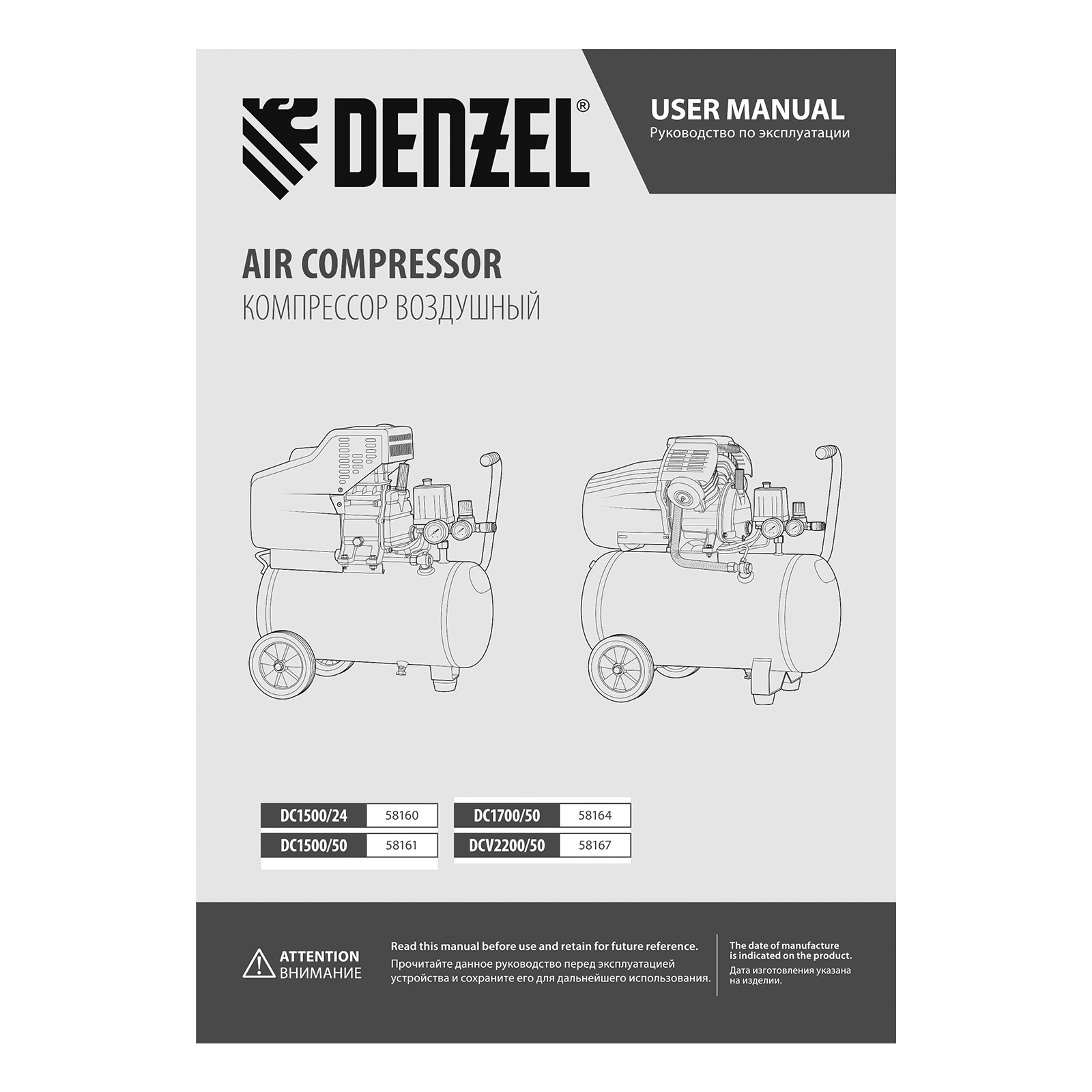 Компрессор воздушный, прямой привод DC1500/50, 1.5 кВт, 50 литров, 220 л/мин Denzel в Воронеже