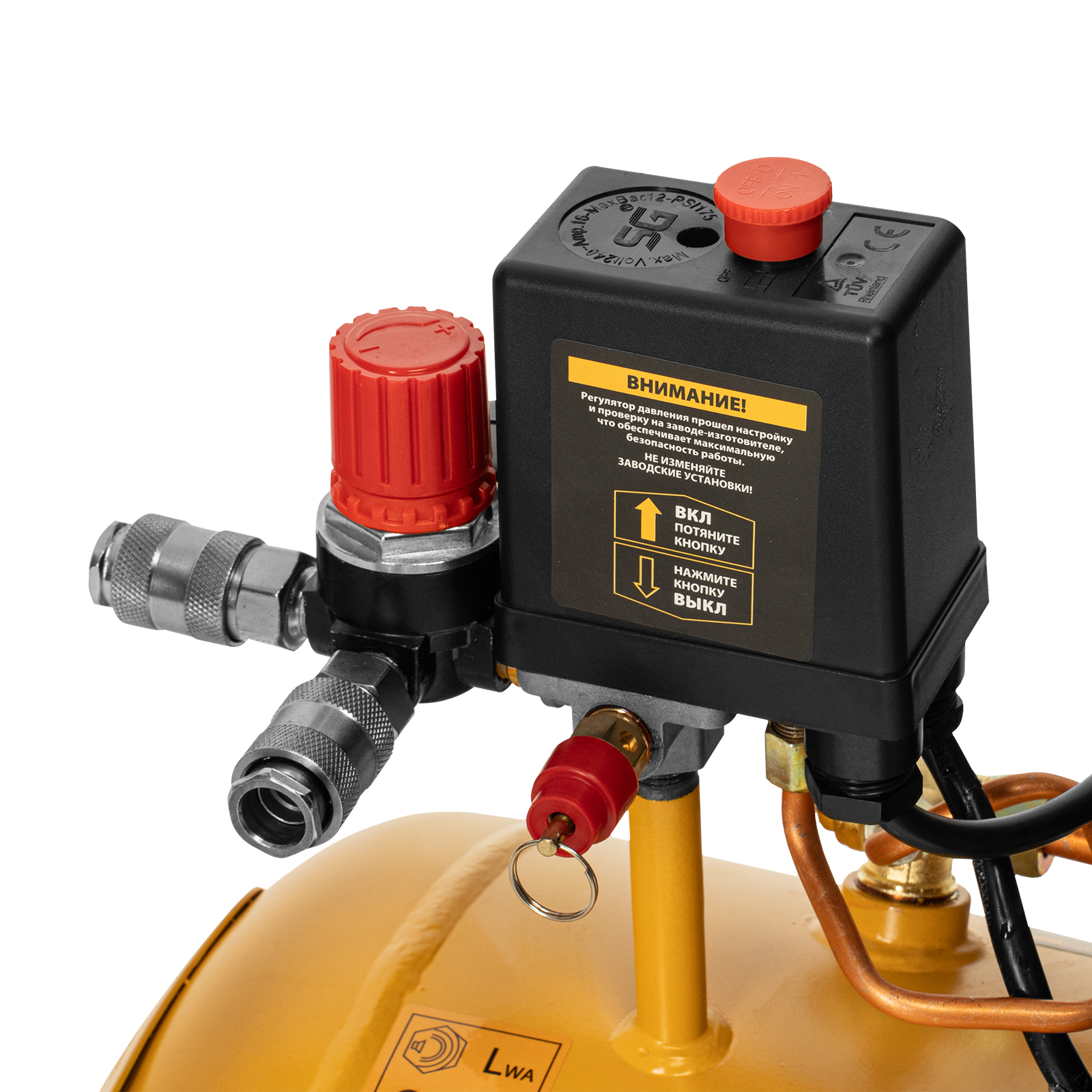 - Быстрое подключение пневмоинструмента — компрессор оснащен быстроразъемным коннектором Euro (Rapid).