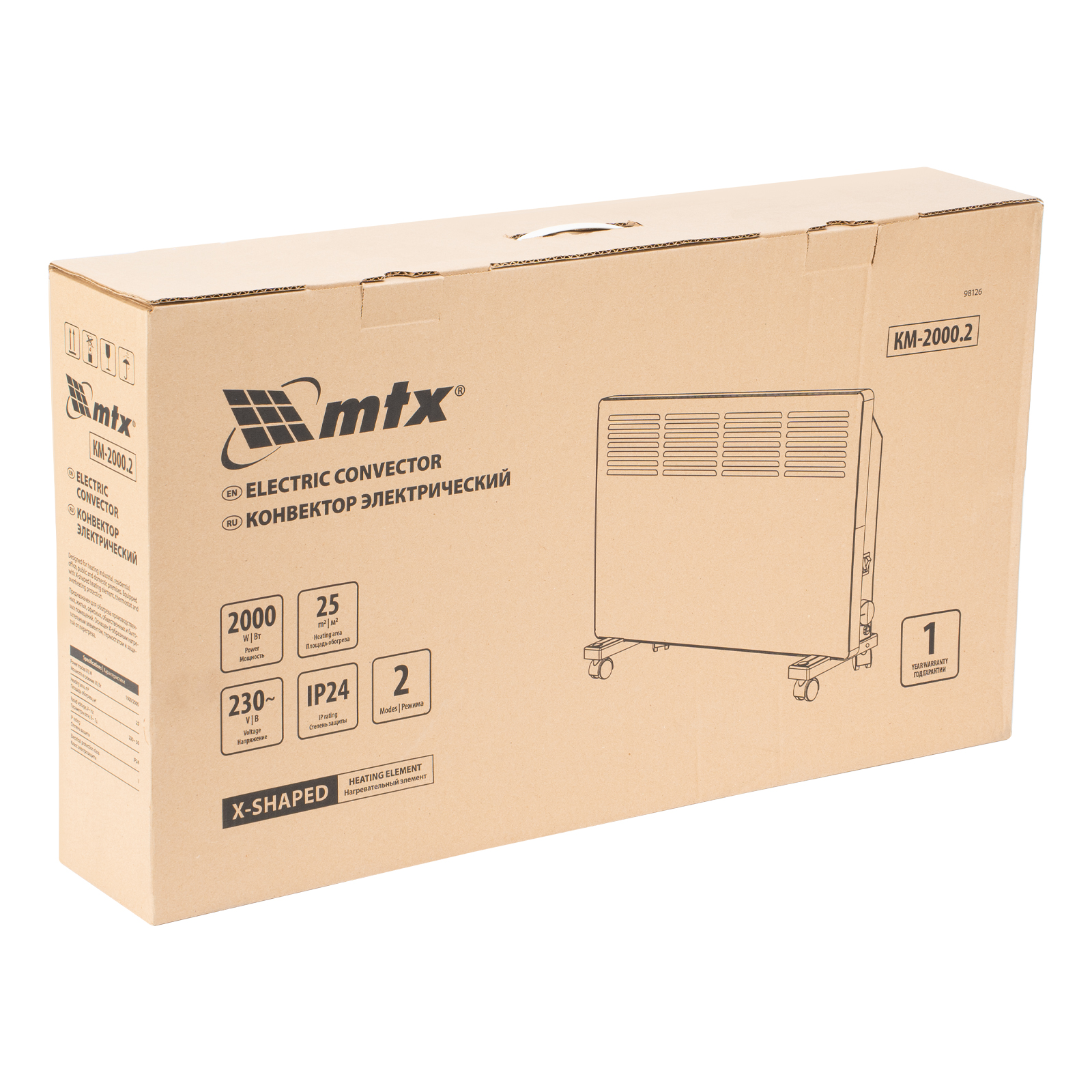 Конвектор электрический MTX KM-2000.2 98126 с X-образным нагревателем, колесами и термостатом, мощностью 2000 Вт, предназначен для использования в закрытых помещениях: квартирах, офисах, на производствах, в общественных местах и т.д. Рекомендуемая площадь обогрева составляет 25 кв.м. Х-образный нагревательный элемент обеспечивает быстрый и равномерный прогрев помещения до необходимой температуры, при этом не сушит воздух.