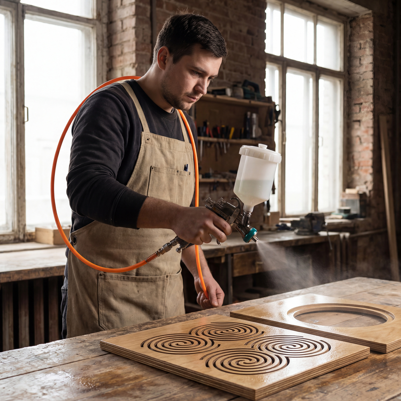 - Легкая подготовка — регуляторы давления воздуха, количества подаваемой краски и хода иглы с понятными насечками позволяют быстро настроить размер факела и добиться идеального результата.
