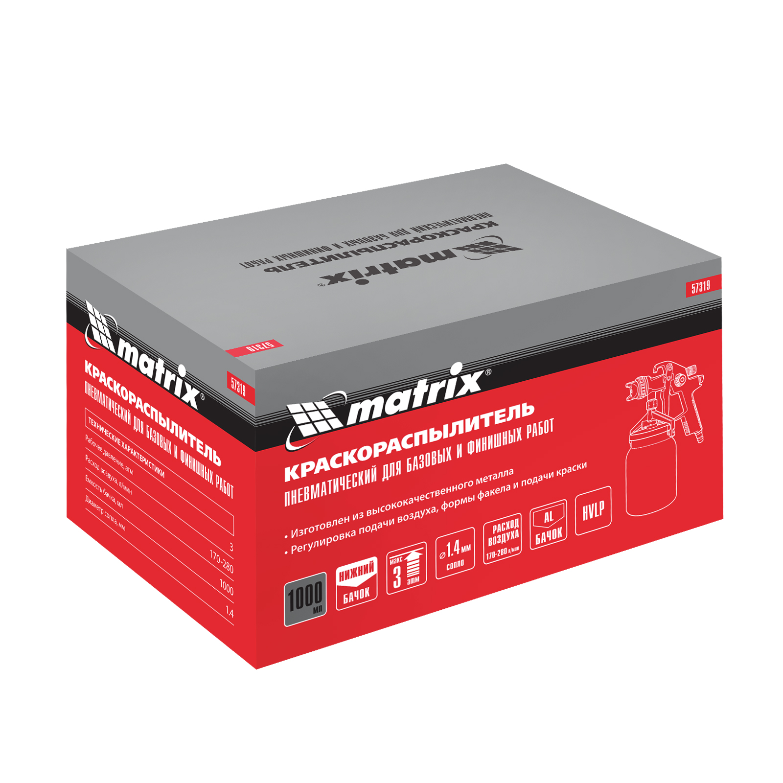 Краскораспылитель HVLP пневмат. с нижним бачком V= 1 л, сопло диаметром 1.4 мм Matrix в Воронеже