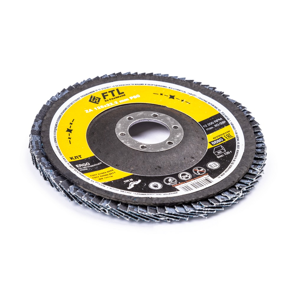 Лепестковый диск для шлифования по нержавеющей стали FTL Ergo 29 125 х 22,2 мм P80 – это расходный материал для ручной угловой шлифовальной машины при работе с изделиями из нержавеющей стали, черных и цветных металлов. Также подходит для обработки твёрдых пород дерева, пластика и полиуретана. Диск предназначен для зачистки и шлифовки сварных швов и кромок стальных заготовок, обработки изделий из нержавеющей стали и полиуретана, шлифовки твёрдых пород дерева. Коническая форма обеспечивает большое пятно контакта с поверхностью и более агрессивный съём материала. Оптимальный угол работы для конического КЛТ - от 15 до 25 градусов к поверхности. Серия ERGO — это универсальный состав из оксида циркония для работы с изделиями из нержавеющей стали. Оксид циркония с лучшей теплопроводностью эффективно отводит тепло из зоны реза, противостоит прижогу и перегреву, сохраняя легирующие свойства нержавеющей стали. Оптимальная формула абразива обеспечивает хороший зацеп с неплохой износостойкостью.ИЗНОСОСТОЙКОСТЬ: Благодаря премиальной формуле режущая и шлифовальная способность абразива снижается в процессе работы значительно медленнее, позволяя выполнить больше работы.ЭФФЕКТИВНАЯ РАБОТА С СИЛЬНЫМ ПРИЖИМОМ: Машинная сборка при производстве исключает ошибки при наклеивании лепестков на основание диска, а плотная набивка обеспечивает более сильный прижим во время работы.САМОЗАТАЧИВАЮЩИЙСЯ АБРАЗИВ: Оксид циркония (циркониевый электрокорунд, цирконий) – это вид абразивного зерна, которое имеет свойство самозатачивания благодаря кристаллической «чешуйчатой» структуре. Зерно циркония в процессе работы постоянно скалывается, из-за чего на поверхности шлифовальной бумаги грани всё время остаются острыми. При этом поверхность заготовки однородна, а зерно скалывается вплоть до момента полного износа, что и обеспечивает высокий ресурс работы инструмента.ВЫСОКОКАЧЕСТВЕННЫЙ ОКСИД ЦИРКОНИЯ: Оптимальное соотношение корунда и самозатачивающихся зёрен оксида циркония позволяют эффективно работать с металлом, деревом и пластиком.ДВОЙНОЕ МЕТАЛЛИЧЕСКОЕ КОЛЬЦО: Двойное металлическое кольцо на диске обеспечивает плотную посадку на фланец УШМ, исключая биения и вибрацию при работе.ПРЕИМУЩЕСТВА:Универсальный (по нержавеющей стали и чёрному металлу)Оксид цирконияМинимальное содержание железа, серы, хлора (не окисляет стали)Тип 29 (куполообразный, конический)Электростатический метод нанесения абразиваЭффект самозатачиванияВозможность работы с большим прижимом (требуется мощная УШМ)Фибергласс – прочное стекловолоконное основание дискаДвойное металлическое кольцо для плотной посадки на фланец УШМВлагозащитная упаковкаФУНКЦИОНАЛЬНЫЕ ОСОБЕННОСТИ:ГЕРМЕТИЧНОСТЬ УПАКОВКИ: Диски упакованы в специальную термоусадочную герметичную плёнку, которая предохраняет от пыли и влаги при длительном хранении в условиях повышенной влажности, на строительных объектах и крупных промышленных производствах.КОМПЛЕКТАЦИЯ: Круг лепестковый для шлифования по нержавеющей стали FTL Ergo 29 125 х 22,2 мм P80 в термоусадочной плёнке со вкладышем в дополнительном ПЭ пакете – 10 шт.