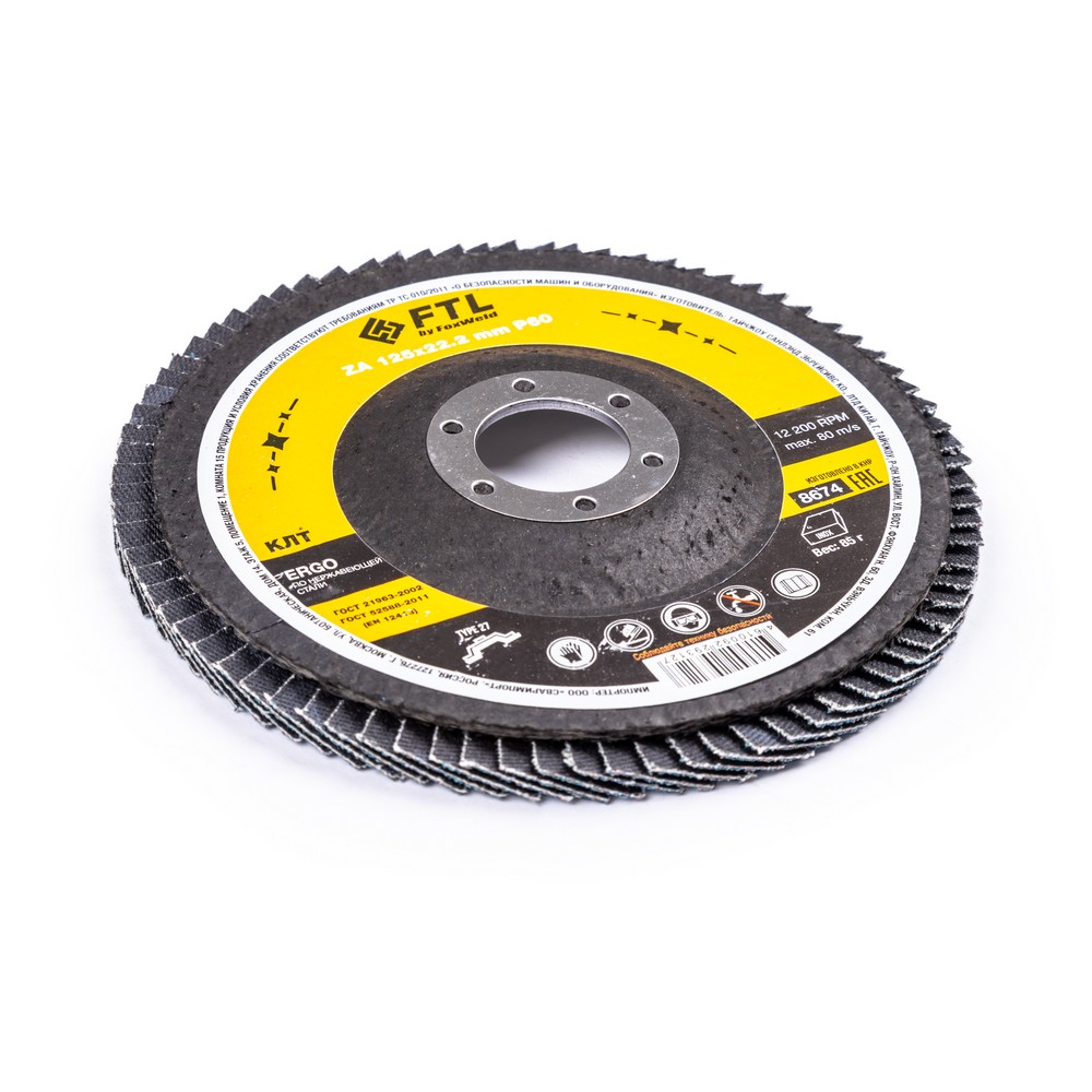 Лепестковый диск для шлифования по нержавеющей стали FTL Ergo 27 125 х 22,2 мм P60 – это расходный материал для ручной угловой шлифовальной машины при работе с изделиями из нержавеющей стали, черных и цветных металлов. Также подходит для обработки твёрдых пород дерева, пластика и полиуретана. Диск предназначен для зачистки и шлифовки сварных швов и кромок стальных заготовок, обработки изделий из нержавеющей стали и полиуретана, шлифовки твёрдых пород дерева. Рабочая поверхность плоского диска ровная и в основном применяется для обработки плоскости и внешних угловых соединений. Оптимальный угол работы для плоского КЛТ – от 0° до 15°. Плоские КЛТ лучше всего подходят для подготовки поверхности и финишной обработки. Удаление материала и финиш происходят за один шаг, что снижает время обработки. Серия ERGO — это универсальный состав из оксида циркония для работы с изделиями из нержавеющей стали. Оксид циркония с лучшей теплопроводностью эффективно отводит тепло из зоны реза, противостоит прижогу и перегреву, сохраняя легирующие свойства нержавеющей стали. Оптимальная формула абразива обеспечивает хороший зацеп с неплохой износостойкостью.ИЗНОСОСТОЙКОСТЬ: Благодаря премиальной формуле режущая и шлифовальная способность абразива снижается в процессе работы значительно медленнее, позволяя выполнить больше работы.ЭФФЕКТИВНАЯ РАБОТА С СИЛЬНЫМ ПРИЖИМОМ: Машинная сборка при производстве исключает ошибки при наклеивании лепестков на основание диска, а плотная набивка обеспечивает более сильный прижим во время работы.САМОЗАТАЧИВАЮЩИЙСЯ АБРАЗИВ: Оксид циркония (циркониевый электрокорунд, цирконий) – это вид абразивного зерна, которое имеет свойство самозатачивания благодаря кристаллической «чешуйчатой» структуре. Зерно циркония в процессе работы постоянно скалывается, из-за чего на поверхности шлифовальной бумаги грани всё время остаются острыми. При этом поверхность заготовки однородна, а зерно скалывается вплоть до момента полного износа, что и обеспечивает высокий ресурс работы инструмента.ВЫСОКОКАЧЕСТВЕННЫЙ ОКСИД ЦИРКОНИЯ: Оптимальное соотношение корунда и самозатачивающихся зёрен оксида циркония позволяют эффективно работать с металлом, деревом и пластиком.ДВОЙНОЕ МЕТАЛЛИЧЕСКОЕ КОЛЬЦО: Двойное металлическое кольцо на диске обеспечивает плотную посадку на фланец УШМ, исключая биения и вибрацию при работе.ПРЕИМУЩЕСТВА:Универсальный (по нержавеющей стали и чёрному металлу)Оксид цирконияМинимальное содержание железа, серы, хлора (не окисляет стали)Тип 27 (куполообразный, с плоской поверхностью)Электростатический метод нанесения абразиваЭффект самозатачиванияВозможность работы с большим прижимом (требуется мощная УШМ)Фибергласс – прочное стекловолоконное основание дискаДвойное металлическое кольцо для плотной посадки на фланец УШМВлагозащитная упаковкаФУНКЦИОНАЛЬНЫЕ ОСОБЕННОСТИ:ГЕРМЕТИЧНОСТЬ УПАКОВКИ: Диски упакованы в специальную термоусадочную герметичную плёнку, которая предохраняет от пыли и влаги при длительном хранении в условиях повышенной влажности, на строительных объектах и крупных промышленных производствах.КОМПЛЕКТАЦИЯ: Круг лепестковый для шлифования по нержавеющей стали FTL Ergo 27 125 х 22,2 мм P60 в термоусадочной плёнке со вкладышем в дополнительном ПЭ пакете – 10 шт.