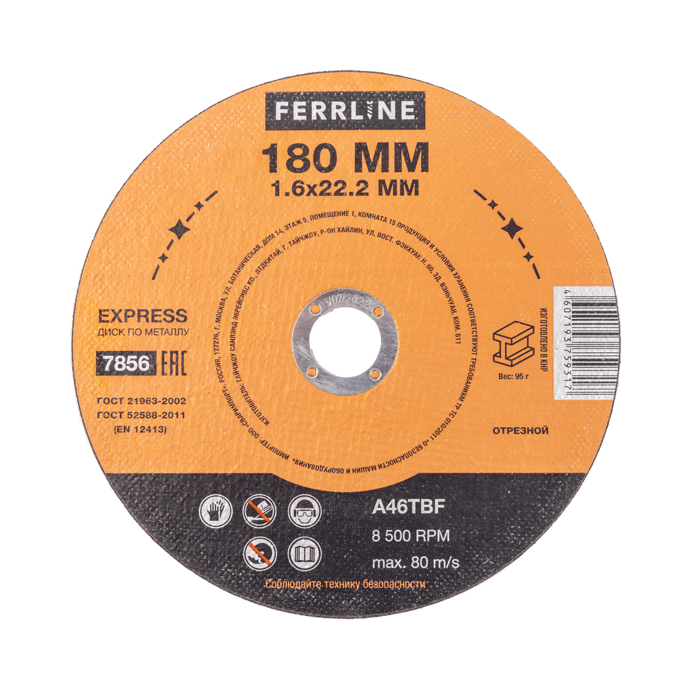 Диск отрезной по металлу FerrLine Express 180 х 1,6 х 22,2 мм A46TBF - расходный инструмент для ручной угловой шлифовальной машины, предназначенный для резки различных изделий из чёрных металлов (чугунов). Конструктивно представляет собой плоский диск (тип 41), поверхность которого покрыта слоем абразивных частиц. Посыпка скреплена между собой бакелитовой связкой и армирована одной стекловолоконной сеткой и тканой подложкой. Поставляется во влагозащитной упаковке. Серия EXPRESS представляет абразивный состав высокой твёрдости, оптимизированный для скоростного реза чёрных металлов. Не рекомендуется для реза изделий из нержавеющей стали во избежание перегрева, прижога, окисления, потери эффективности легирующих добавок.ИЗНОСОСТОЙКОСТЬ: Благодаря премиальной формуле режущая и шлифовальная способность абразива снижается в процессе работы значительно медленнее, позволяя выполнить больше работы.УНИКАЛЬНЫЙ СОСТАВ: Технология производства включает в себя эксклюзивный рецепт абразива и смол: применение только твёрдых составов класса ВТ1, ВТ2, армирование сеткой из стекловолокна. Высокая твёрдость связывающей смолы позволяет сделать значительно большее количество резов по сравнению с кругами с обычным абразивом.МЕТАЛЛИЧЕСКОЕ КОЛЬЦО: Металлическое кольцо на диске обеспечивает плотную посадку на фланец УШМ, исключая биения и вибрацию при работе.ГЕРМЕТИЧНОСТЬ УПАКОВКИ: Диски упакованы в специальную термоусадочную герметичную плёнку, которая предохраняет от пыли и влаги при длительном хранении в условиях повышенной влажности, на строительных объектах и крупных промышленных производствах.ПРЕИМУЩЕСТВА:По чёрному металлу (!)Тип 41 (плоский)Быстрый резСостав на базе оксида алюминияМеталлическое кольцо для плотной посадки на фланец УШМВысокая твёрдость составаВлагозащитная упаковкаКОМПЛЕКТАЦИЯ: Отрезной круг по чёрному металлу в термоусадочной плёнке со вкладышем – 10 шт.