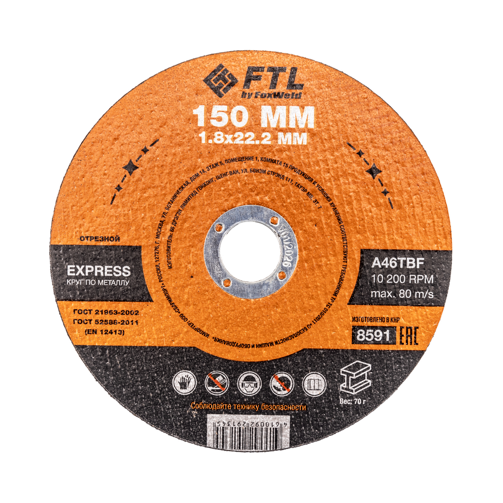 Круг отрезной по металлу FTL Express 150 х 1,8 х 22,2 мм A46TBF