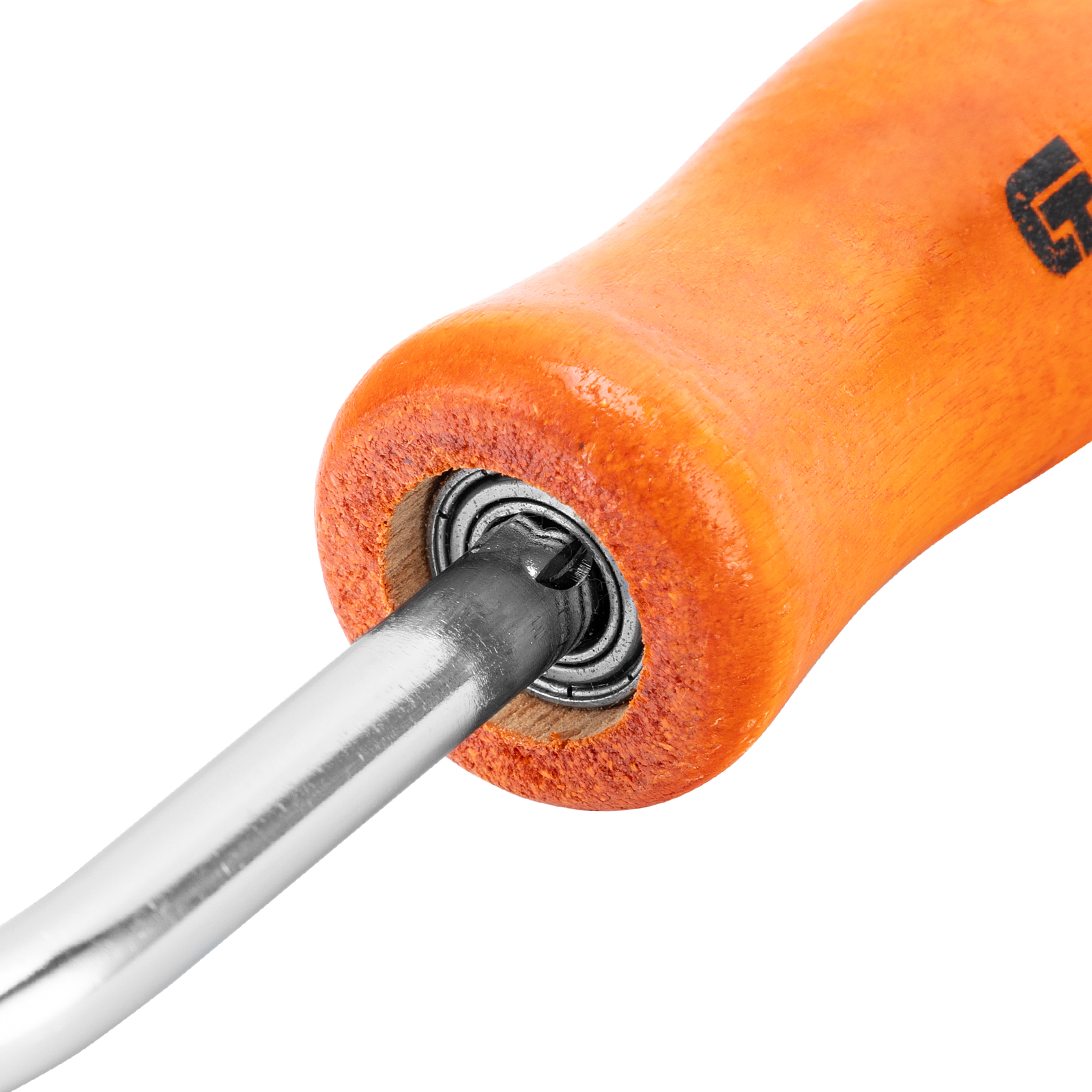 - Комфортная работа — эргономичная деревянная рукоятка удобно ложится в руку.
