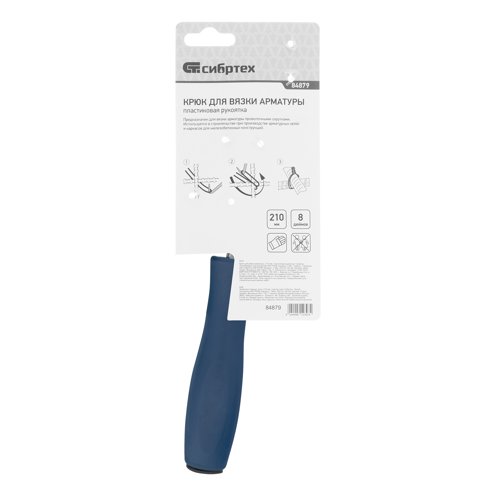Крюк для вязки арматуры, 210 мм, пластиковая рукоятка Сибртех в Воронеже