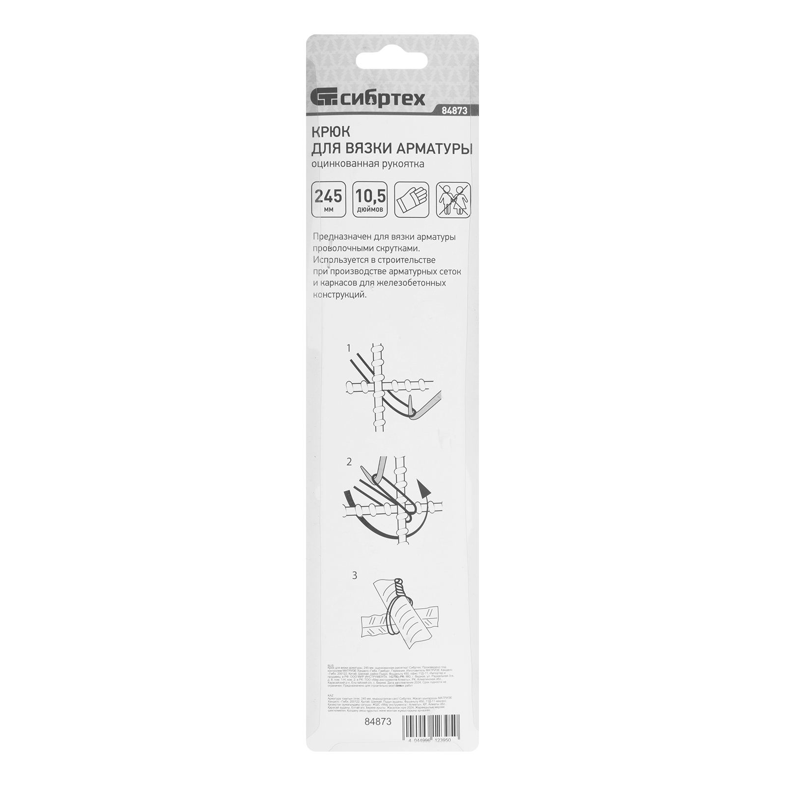 Крюк для вязки арматуры, 245 мм, оцинкованная рукоятка Сибртех в Воронеже