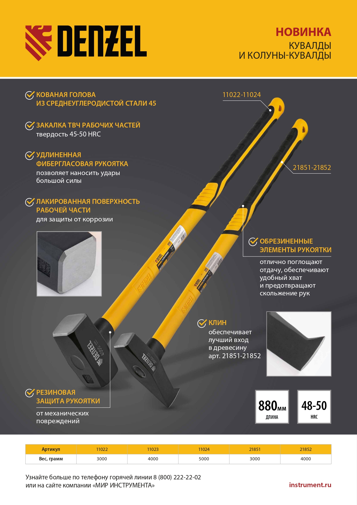 Кувалда 3000 г, кованая, фибергласовая рукоятка c TPR покрытием, 880 мм Denzel в Воронеже