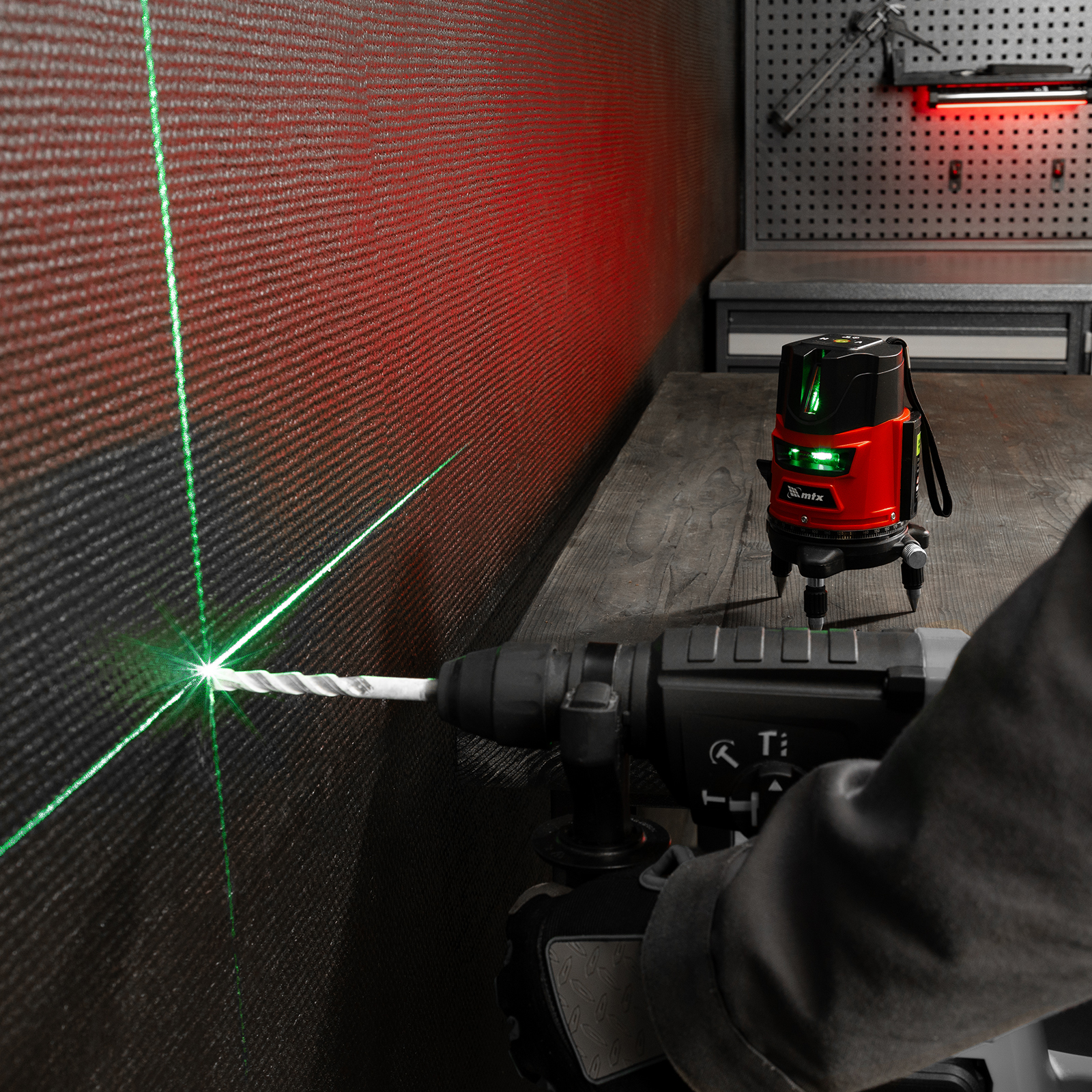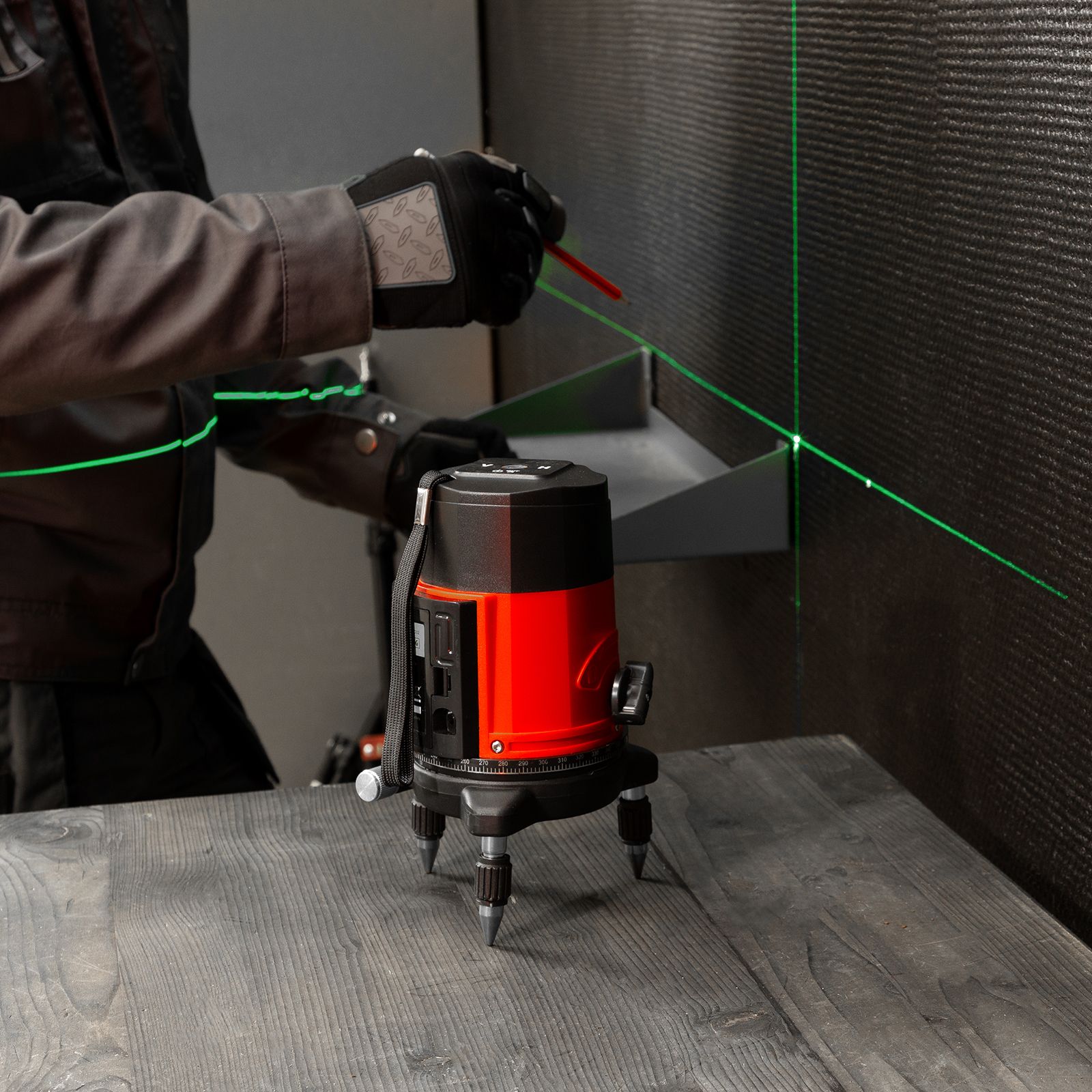 Лазерный уровень MTX CRX-30G 35032 с зеленым лучом, резьбой под штатив 5/8″, в комплекте с батарейками, проецирует на поверхность горизонтальную, вертикальную линии или крест дальностью до 30 м. Используется при проведении бытовых ремонтно-строительных работ в помещениях. Погрешность измерений составляет всего лишь ±1,5 мм 5 м.