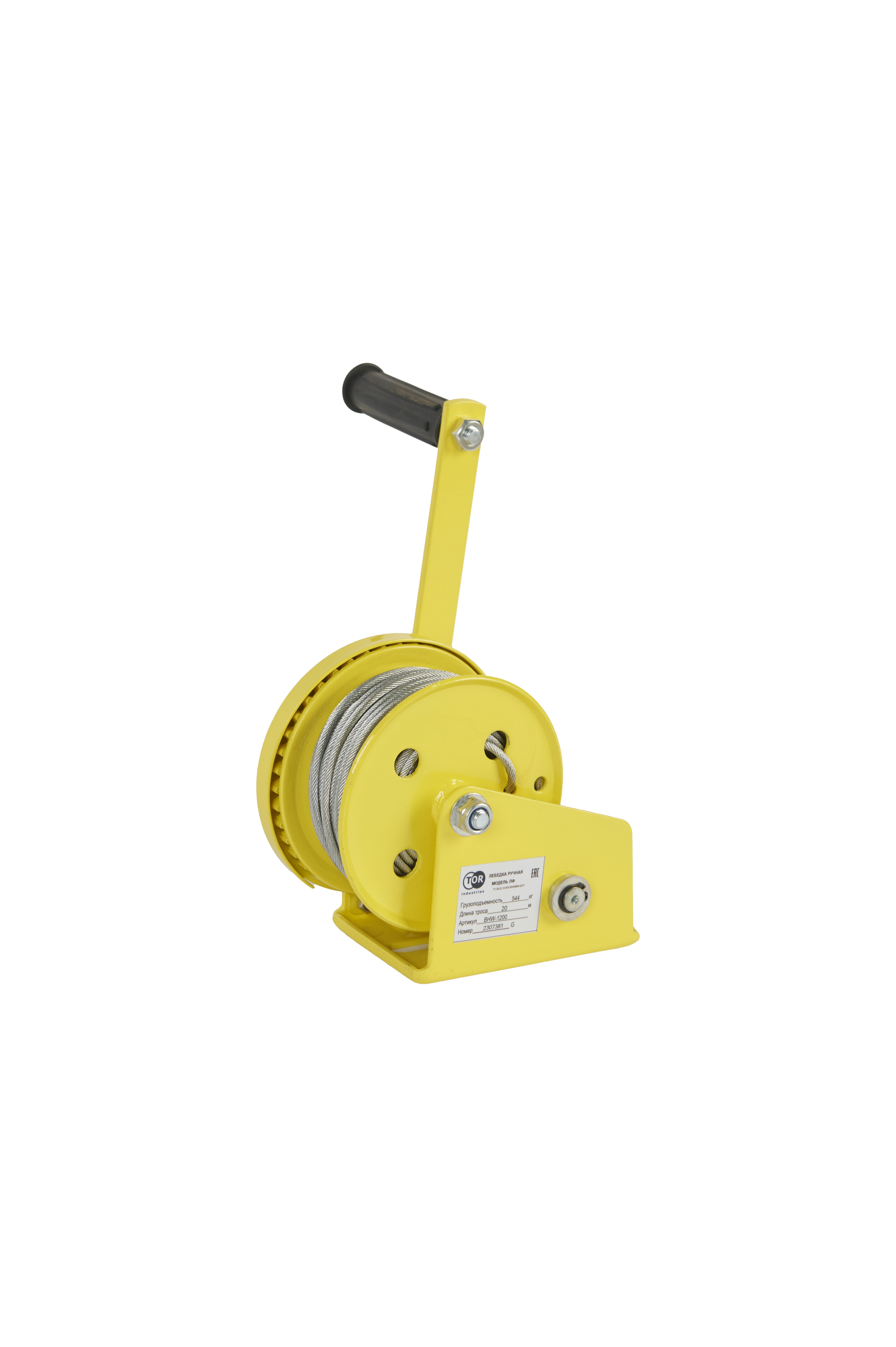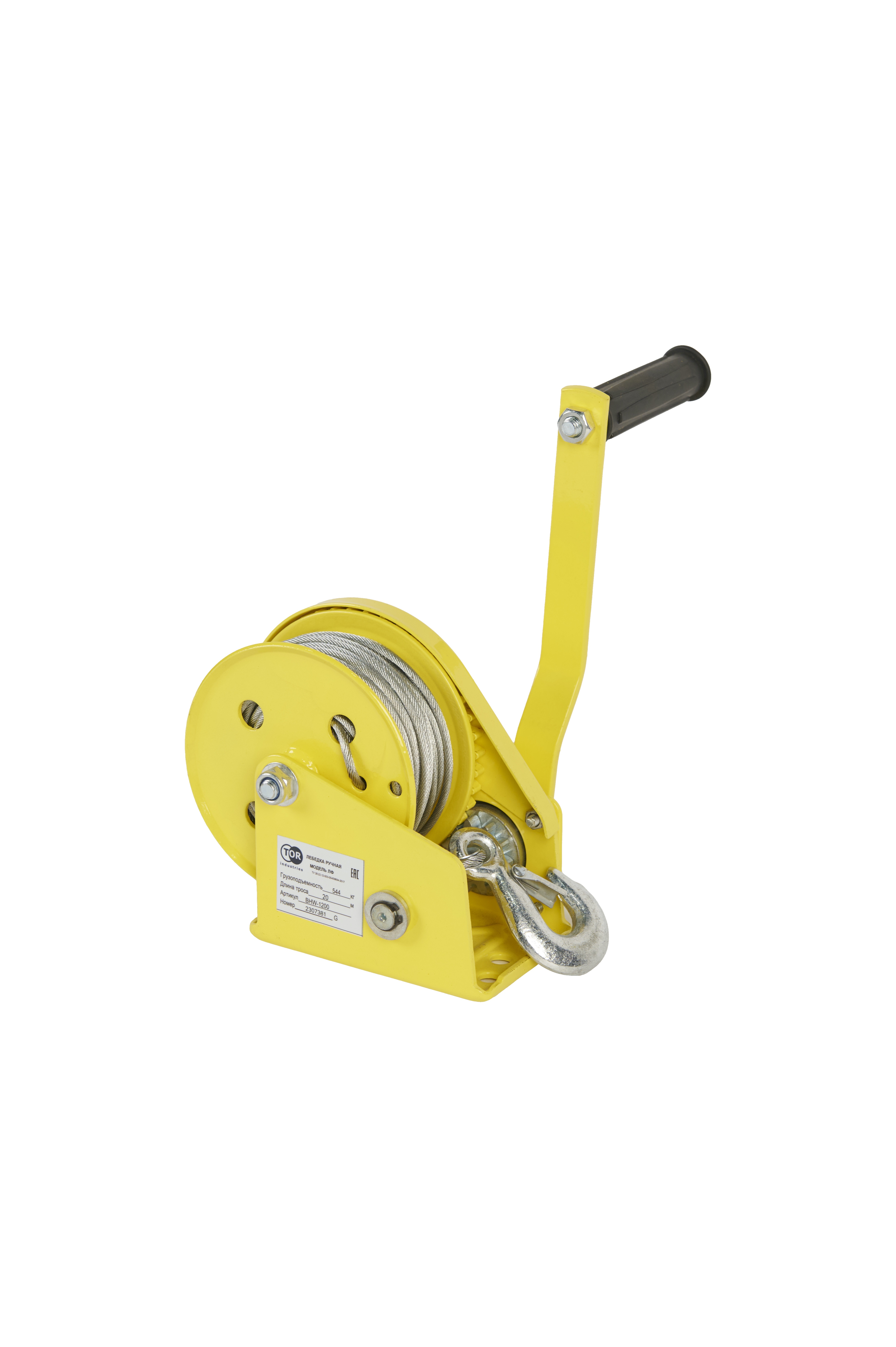 Лебедка ручная барабанная с тросом 540кг 20м стальной корпус TOR BHW в Воронеже