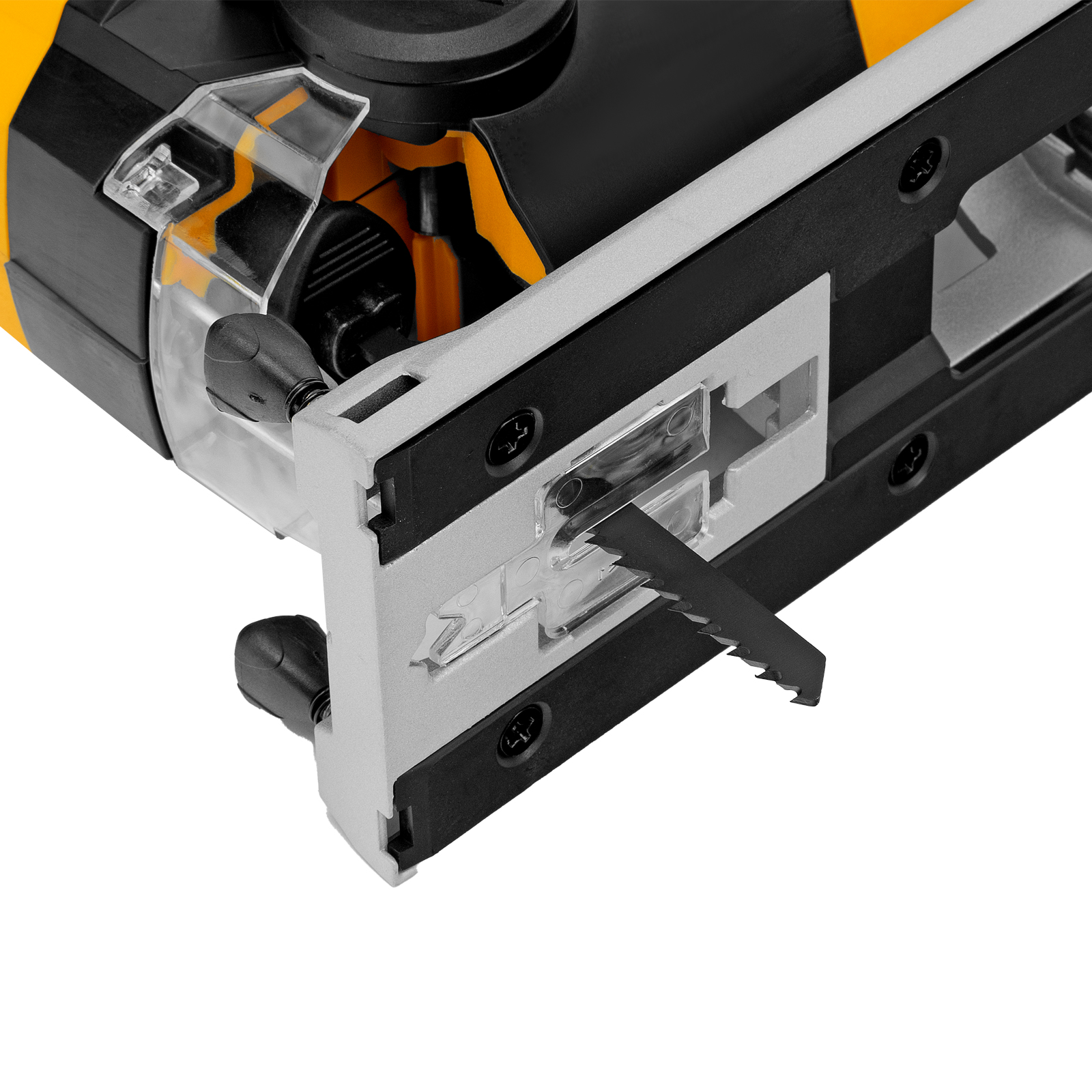 - Быстрая замена оснастки — благодаря бесключевому креплению пилка устанавливается легко и без дополнительного инструмента.