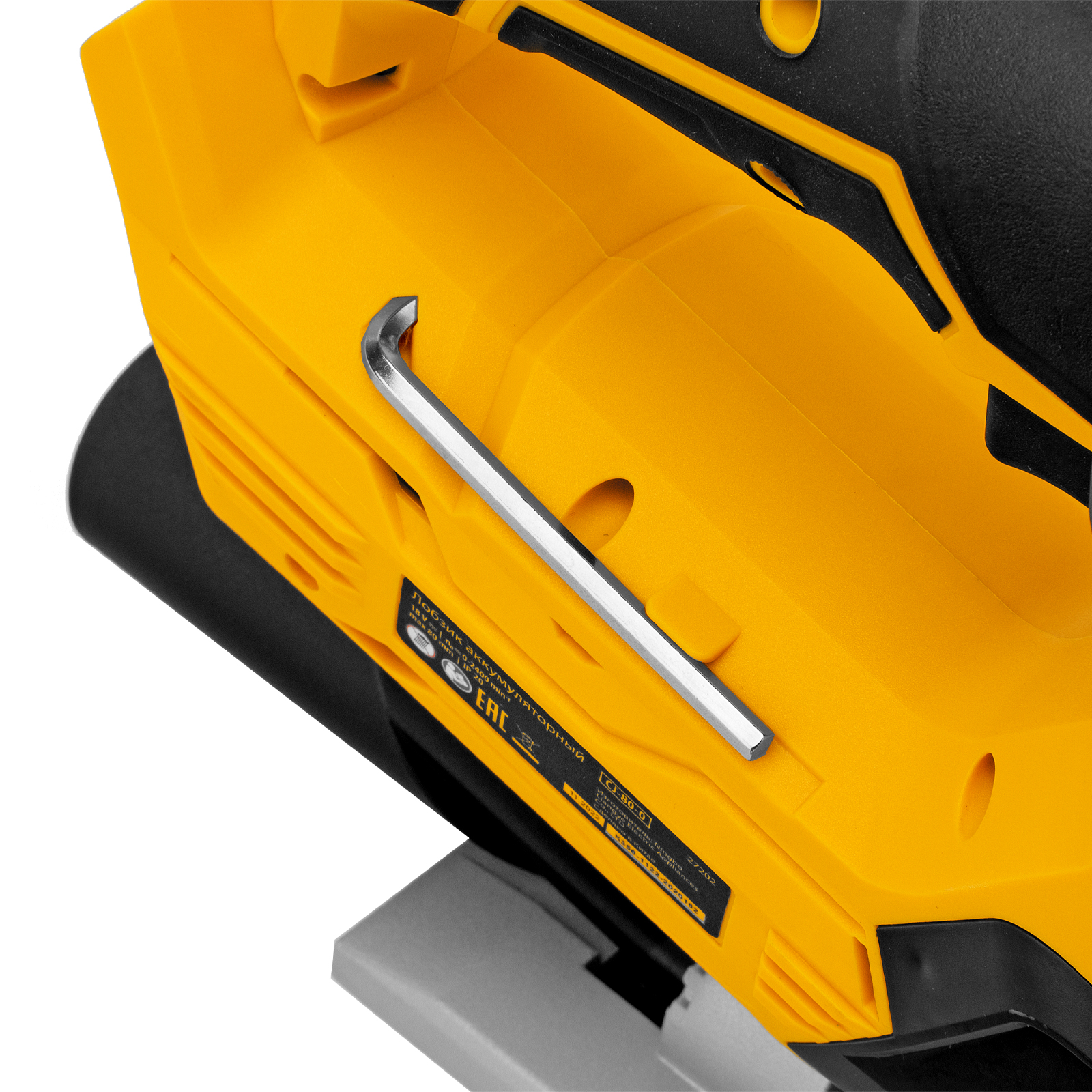 Аккумуляторный лобзик Denzel CJ-80 27201 работает от источника питания Li-Ion с рабочим напряжением 18 В, емкостью 2 А·ч. Предназначен для прямого и фигурного реза листовых материалов из древесины и пластмассы, а также металлических заготовок, ламината, ДСП, ДВП. Максимальная глубина пропила деревянных материалов составляет 80 мм, алюминиевых — 12 мм, стальных — 5 мм. Мощный двигатель позволяет развивать скорость движения оснастки до 2400 ход/мин, что обеспечивает высокую производительность.