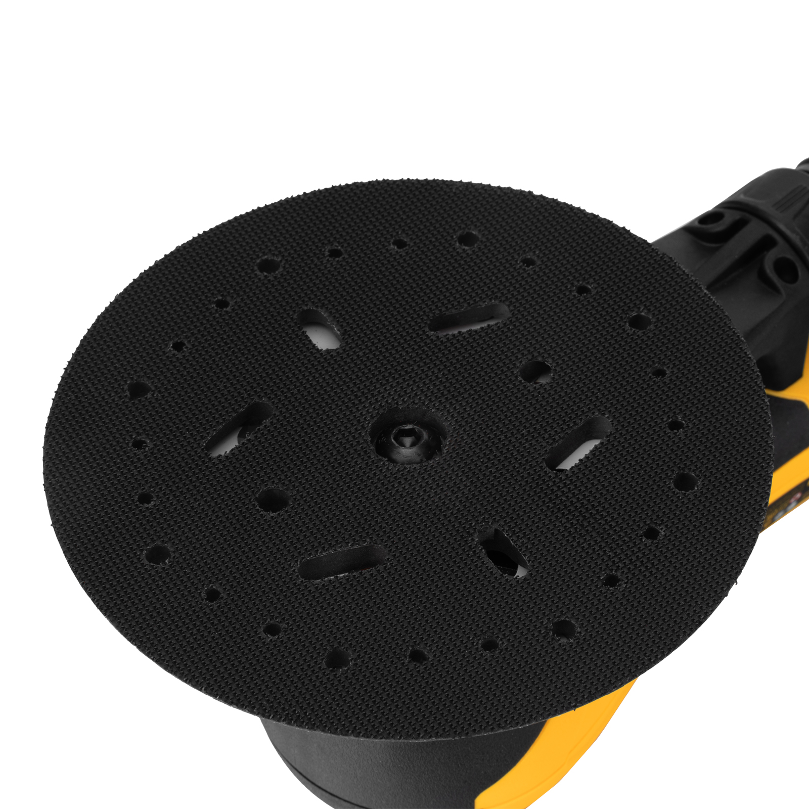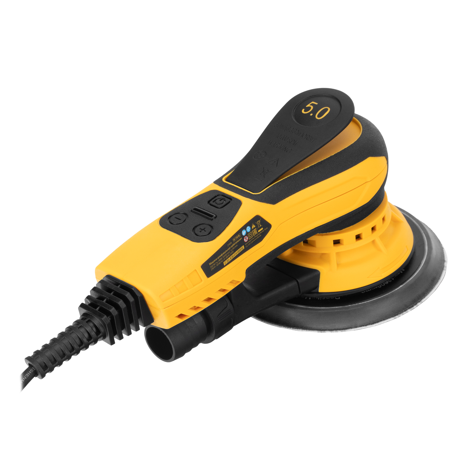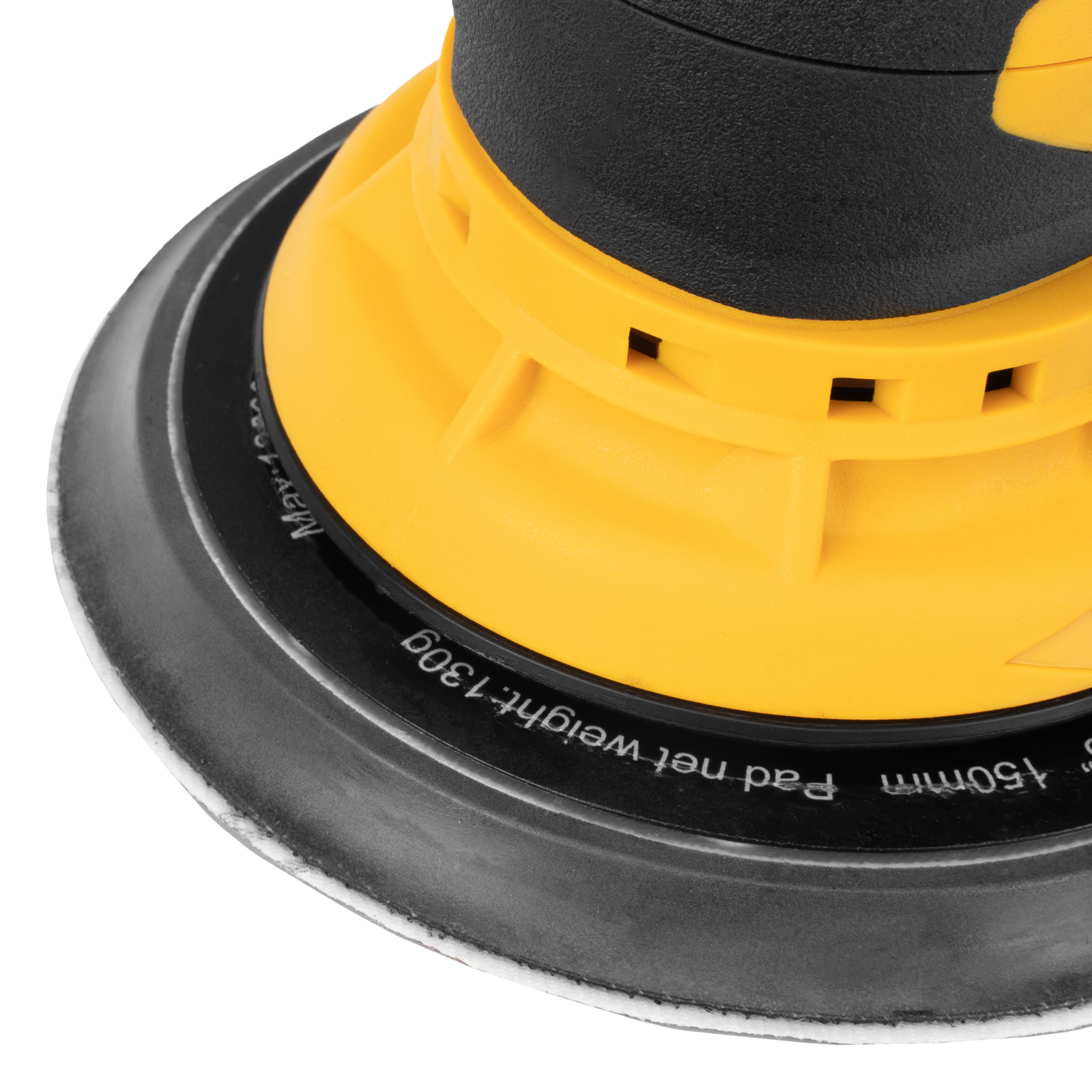 Эксцентриковая шлифмашина совместима со шлифовальными кругами диаметром 150 мм. Во время работы подошва совершает вращательные движения в комбинации с колебательными, что обеспечивает повышенную производительность и успешное решение поставленных задач.