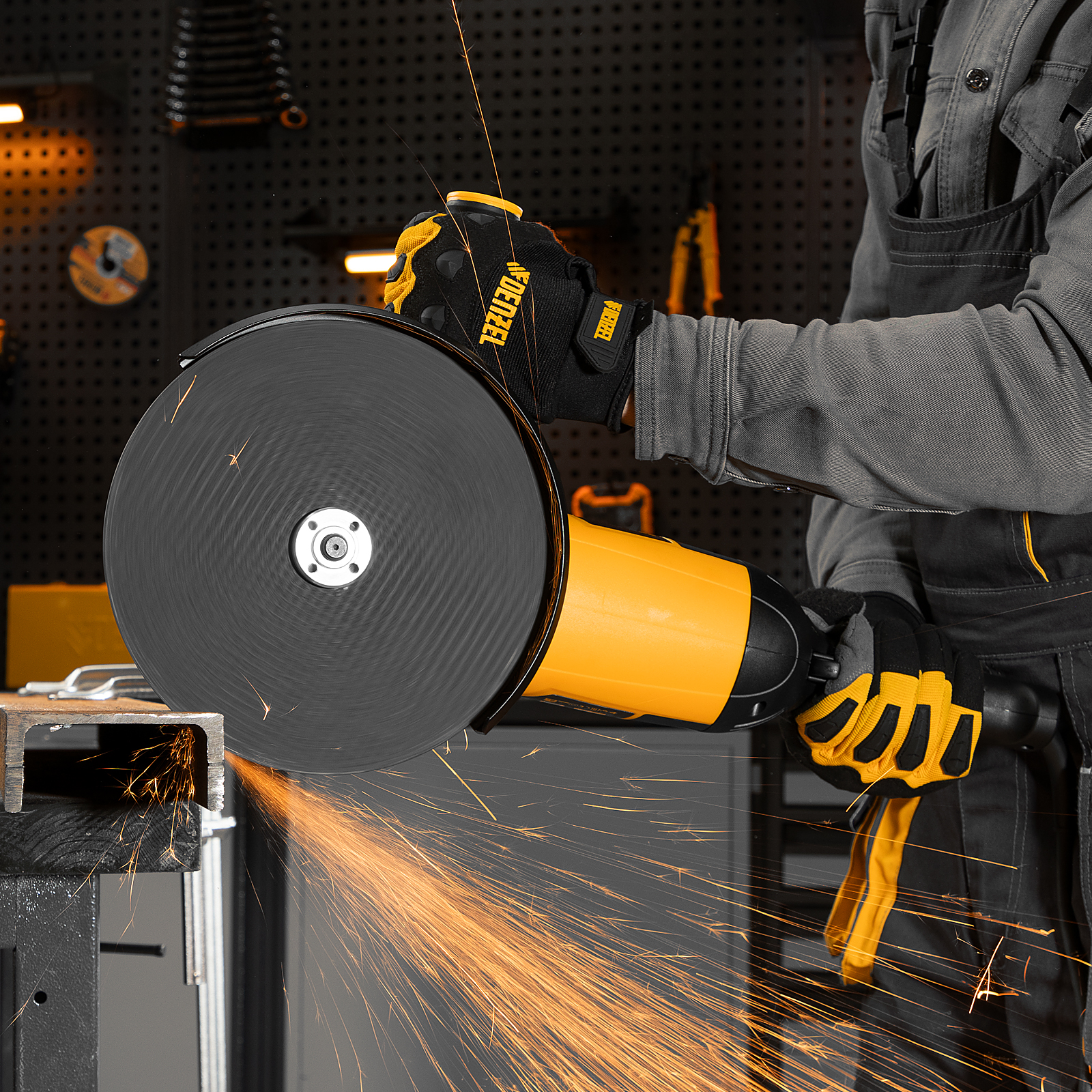 - Безопасность — кнопка блокировки предотвращает случайный запуск УШМ.