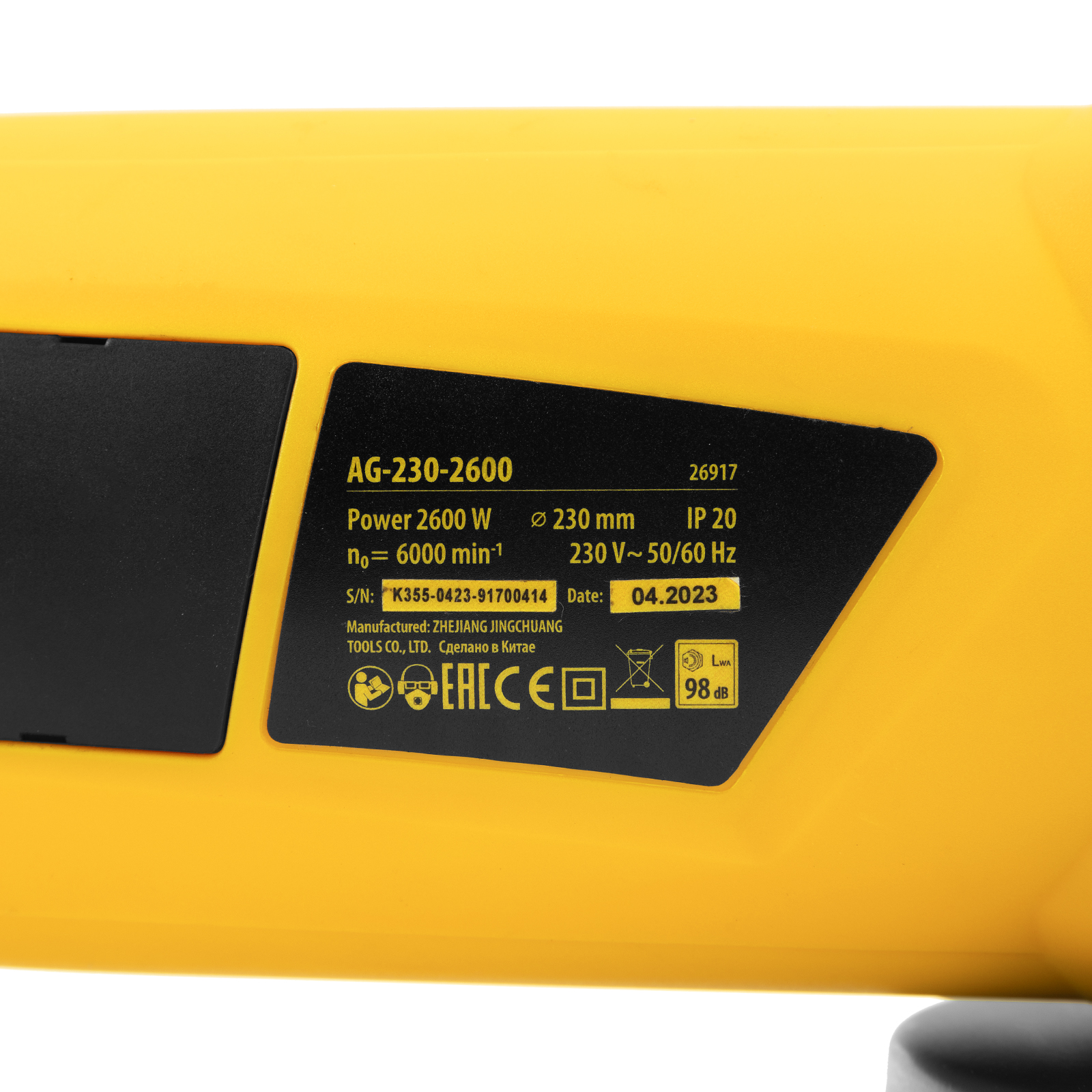 Машина шлифовальная угловая AG230-2600, 2600 Вт, 230 мм, 6000 об/мин Denzel в Воронеже