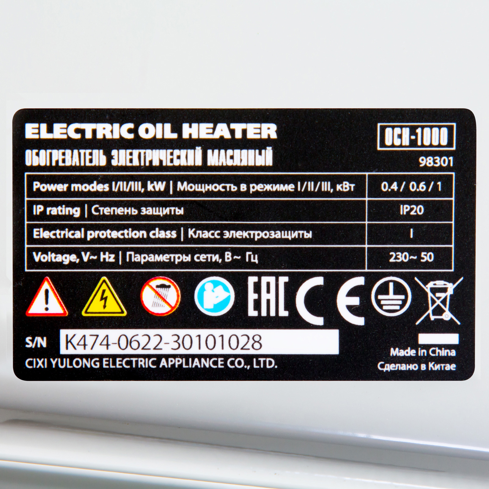 - 3 режима работы — можно установить мощность нагрева 400, 600 и 1000 Вт в зависимости от площади помещения.