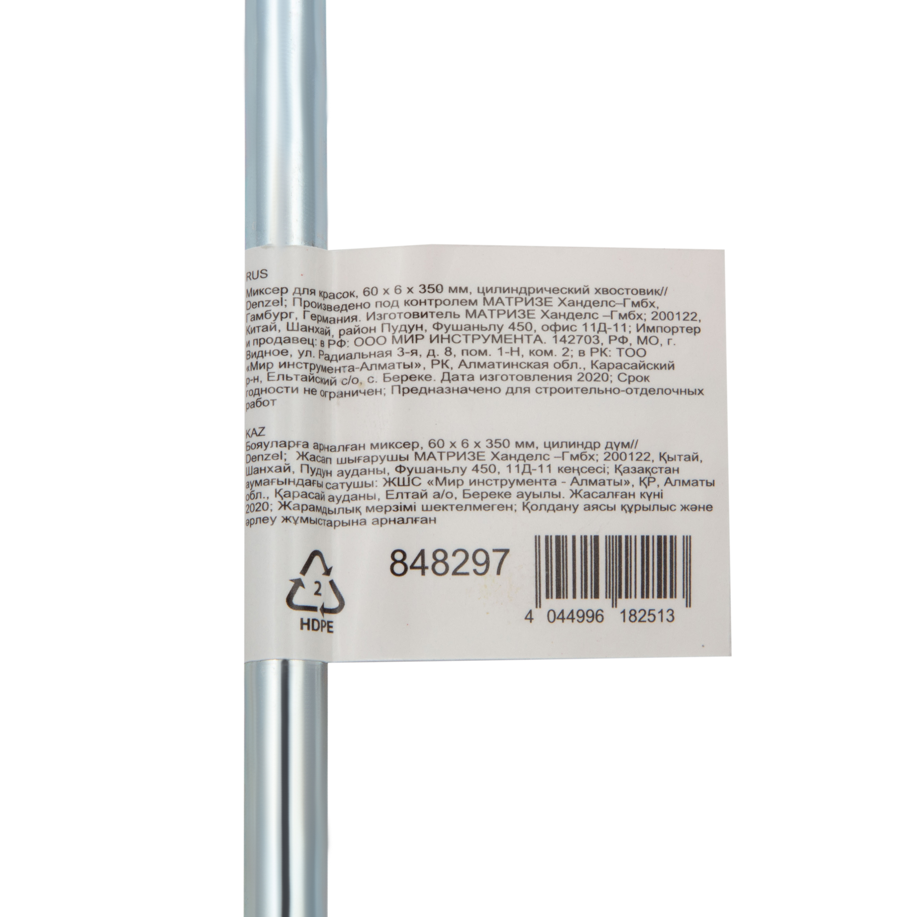 Миксер для красок, 60 х 6 х 350 мм, цилиндрический хвостовик Denzel в Воронеже
