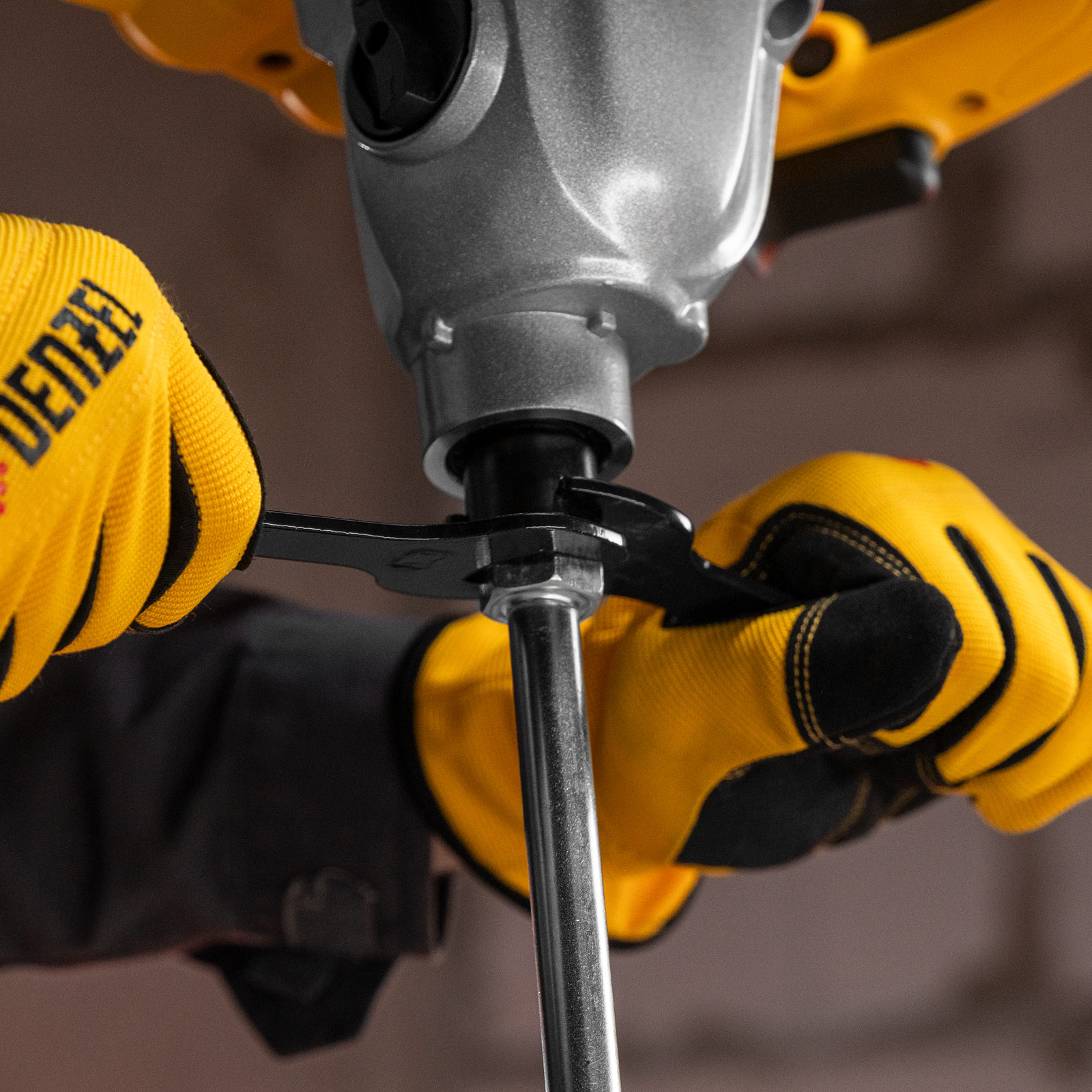 - Диаметр оснастки 120 мм — строительные компоненты смешиваются равномерно, двигатель не перегружается.