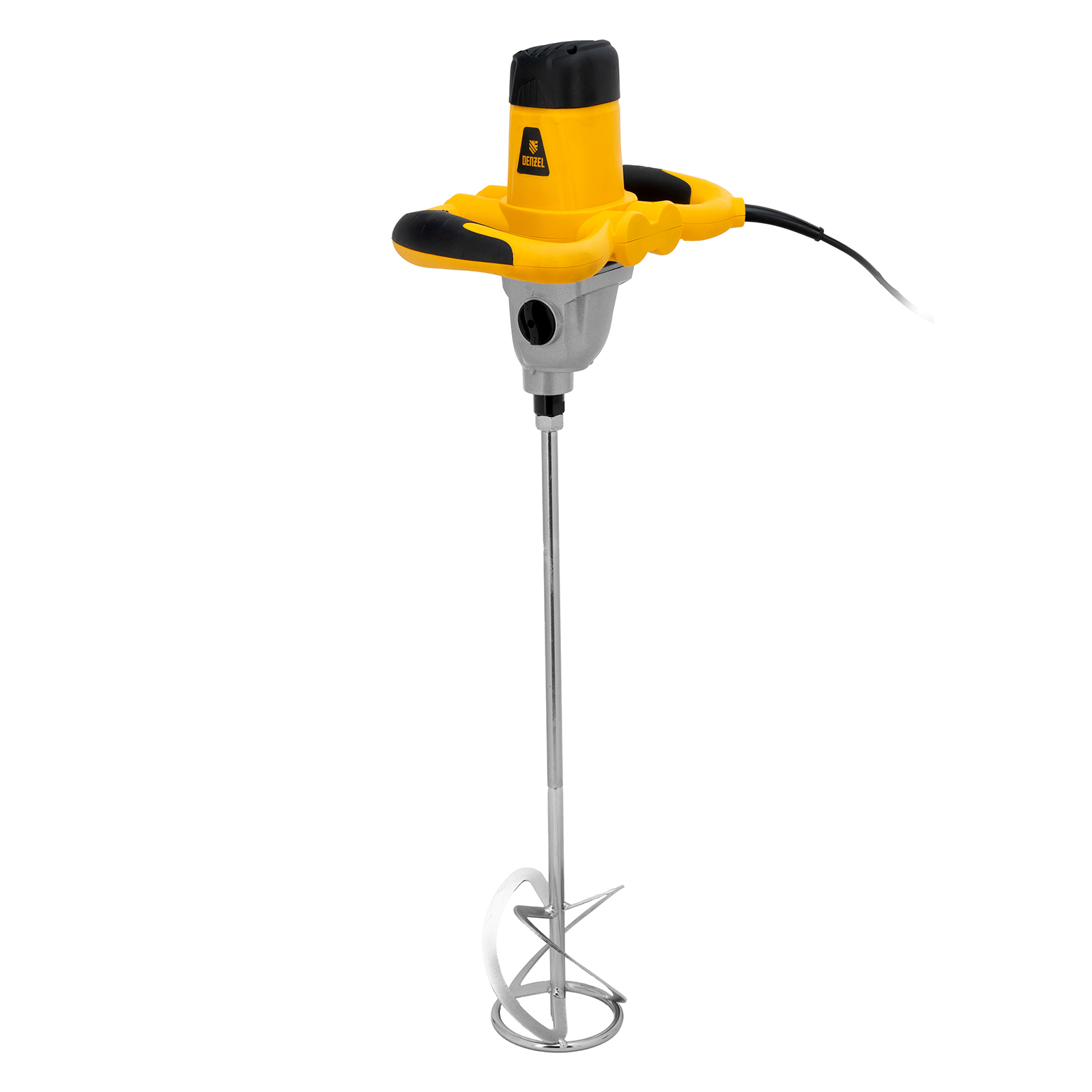 Миксер строительный Denzel EM-1-1220 27903 мощностью 1220 Вт предназначен для смешивания различных смесей, растворов, лакокрасочных материалов на скорости 0-480/0-800 об/мин при проведении строительных и ремонтных работ. Эффективно работает с мелким щебнем и крупнодисперсными смесями, а высокий крутящий момент 107 Н⋅м позволяет смешивать даже вязкие растворы. Миксер предназначен для бытового применения.