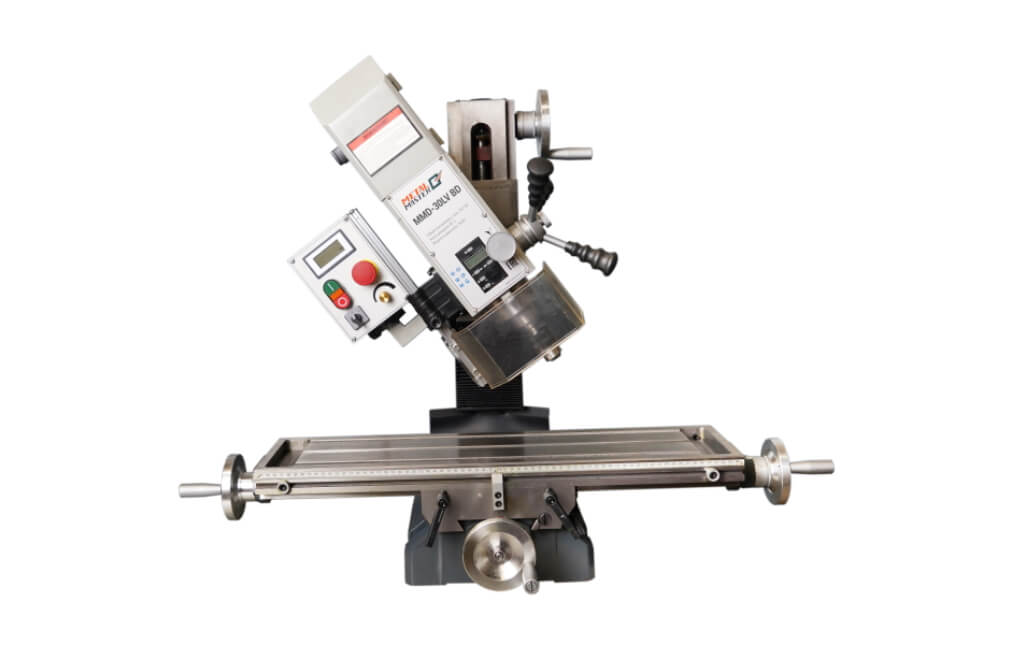 Конструкция станка METAL MASTER MMD - 30LV BD предоставляет возможность поворота головки на угол до 90 градусов, что позволяет обрабатывать взаимно перпендикулярные (или находящиеся под определенным углом) плоскости и исключить из технологического процесса часть вспомогательных операций и тем самым снизить операционное время.Крестообразный стол перемещается по направляющим типа "ласточкин хвост", регулируемые клиновыми планками. Стол имеет Т-образные пазы для монтажа на нем вспомогательных приспособлений.Передача крутящего момента от двигателя осуществляется посредством ременной передачи, что позволяет выполнять на станке выполнять операции сверления.
