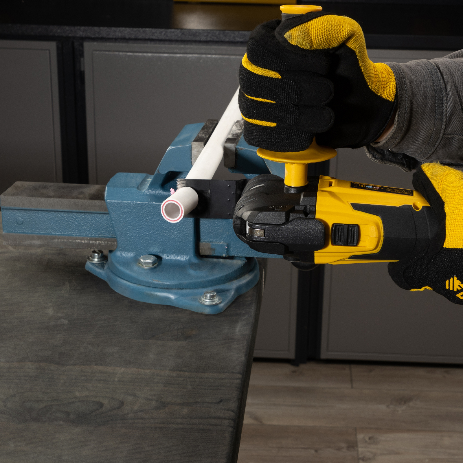 - Высокая эффективность — инструмент способен отрезать материал вровень с поверхностью, например, встык к стене плинтус, что невозможно сделать ни лобзиком, ни пилой.