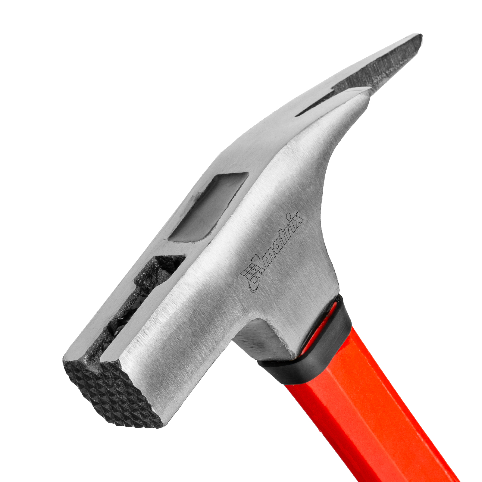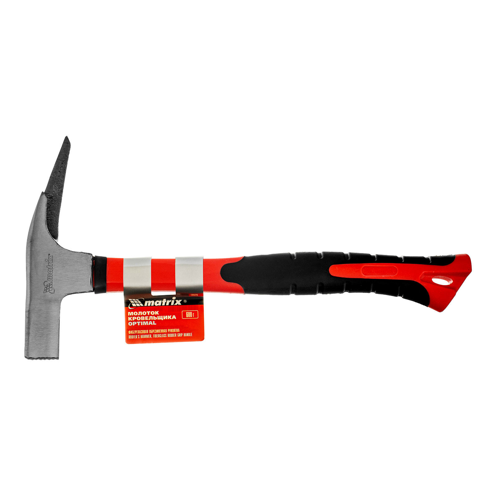 Молоток кровельщика Matrix «optimal» 10626 с головкой весом 600 г и фибергласовой обрезиненной рукояткой — профессиональный ударный инструмент, применяемый при выполнении кровельных работ. Он позволяет забивать и извлекать гвозди для их выпрямления, а также отгибать кромки и пробивать отверстия в кровельном материале. На ударной поверхности бойка имеются глубокие поперечные насечки, предотвращающие соскальзывание с гвоздя.