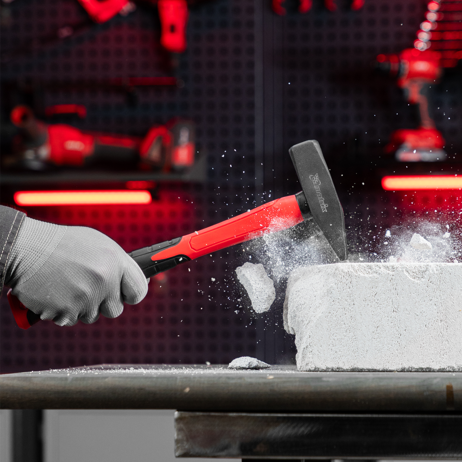 - Комфортная работа — легкая фибергласовая рукоятка снижает отдачу от ударов, благодаря резиновым накладкам она не скользит в руке.