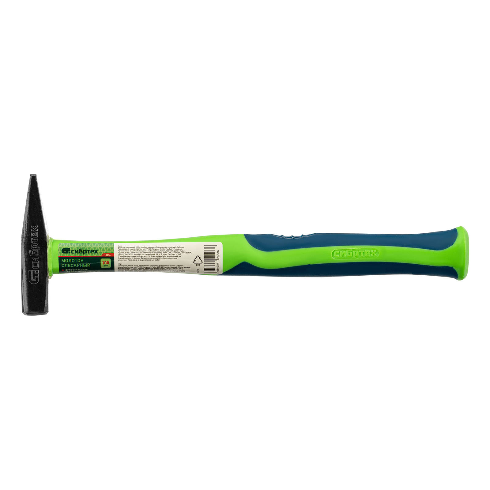 Молоток слесарный, 100 г, фибергласовая обрезиненная рукоятка Сибртех в Воронеже