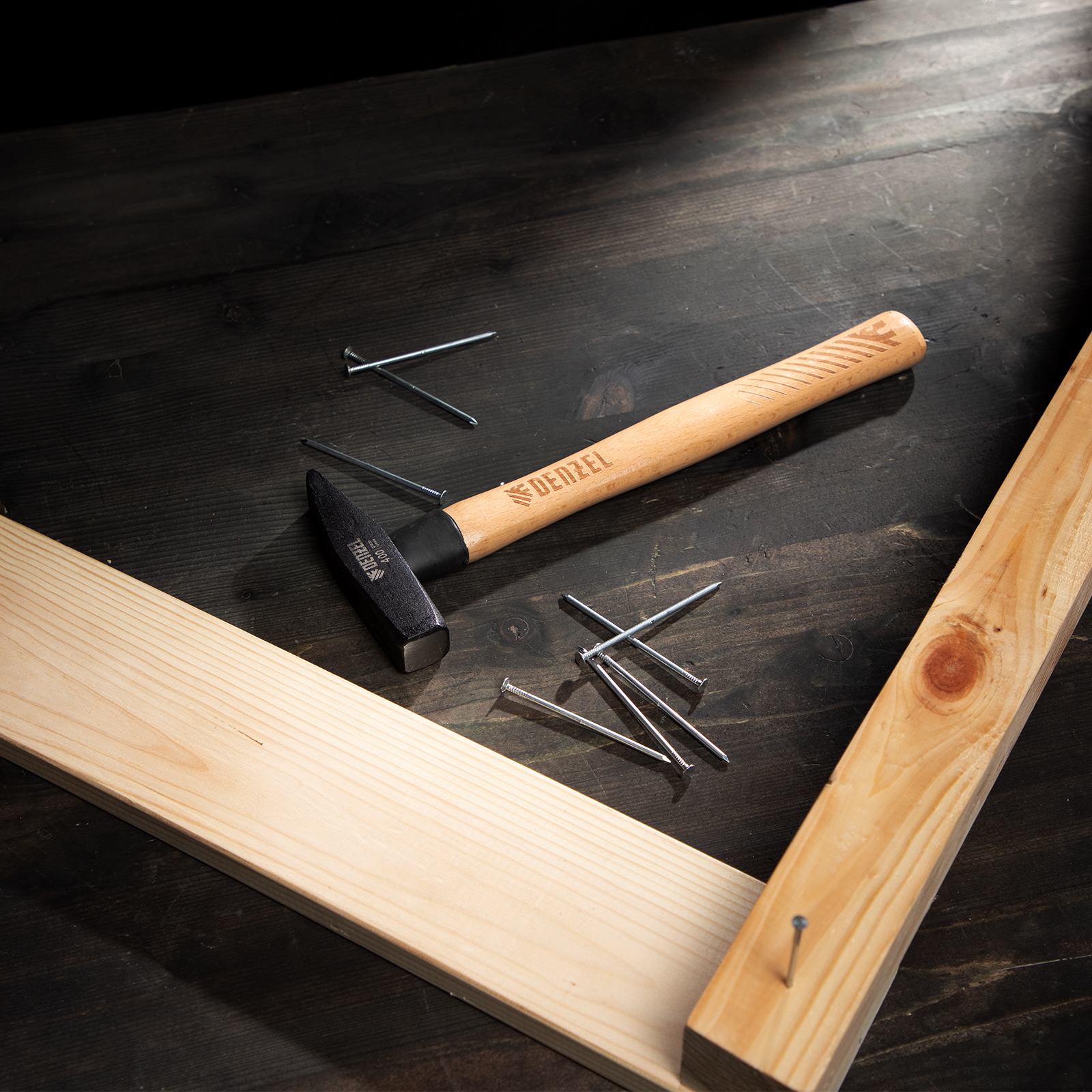 Молоток слесарный, 400 г, кованый квадратный боек, буковая рукоятка Denzel в Воронеже