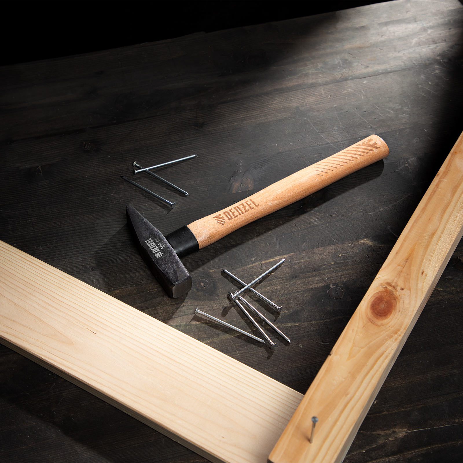Молоток слесарный, 500 г, кованый квадратный боек, буковая рукоятка Denzel в Воронеже
