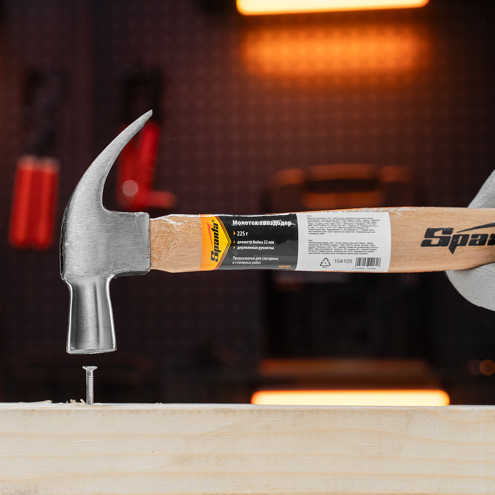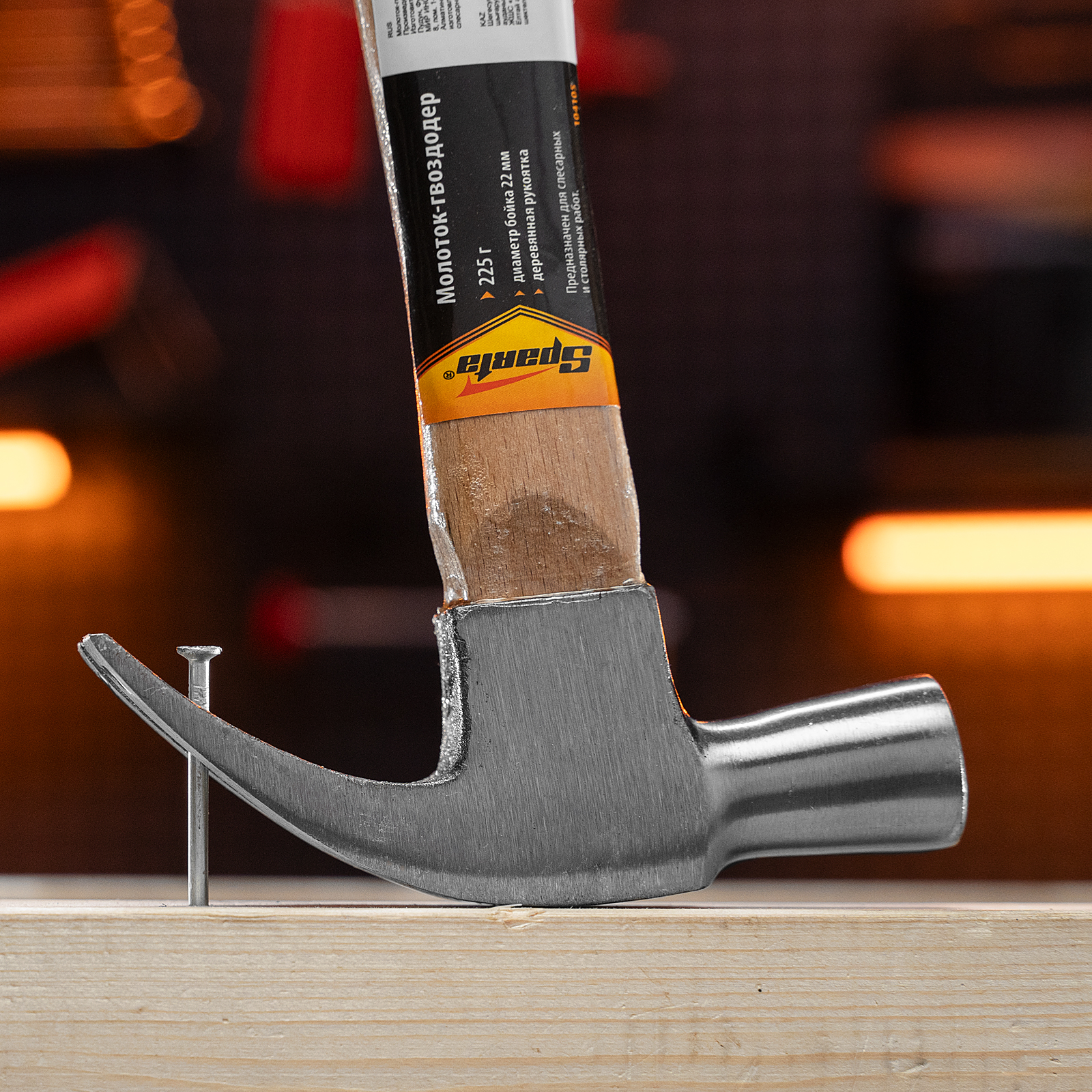Молоток-гвоздодер, 225 г, боек 22 мм, деревянная рукоятка Sparta в Воронеже