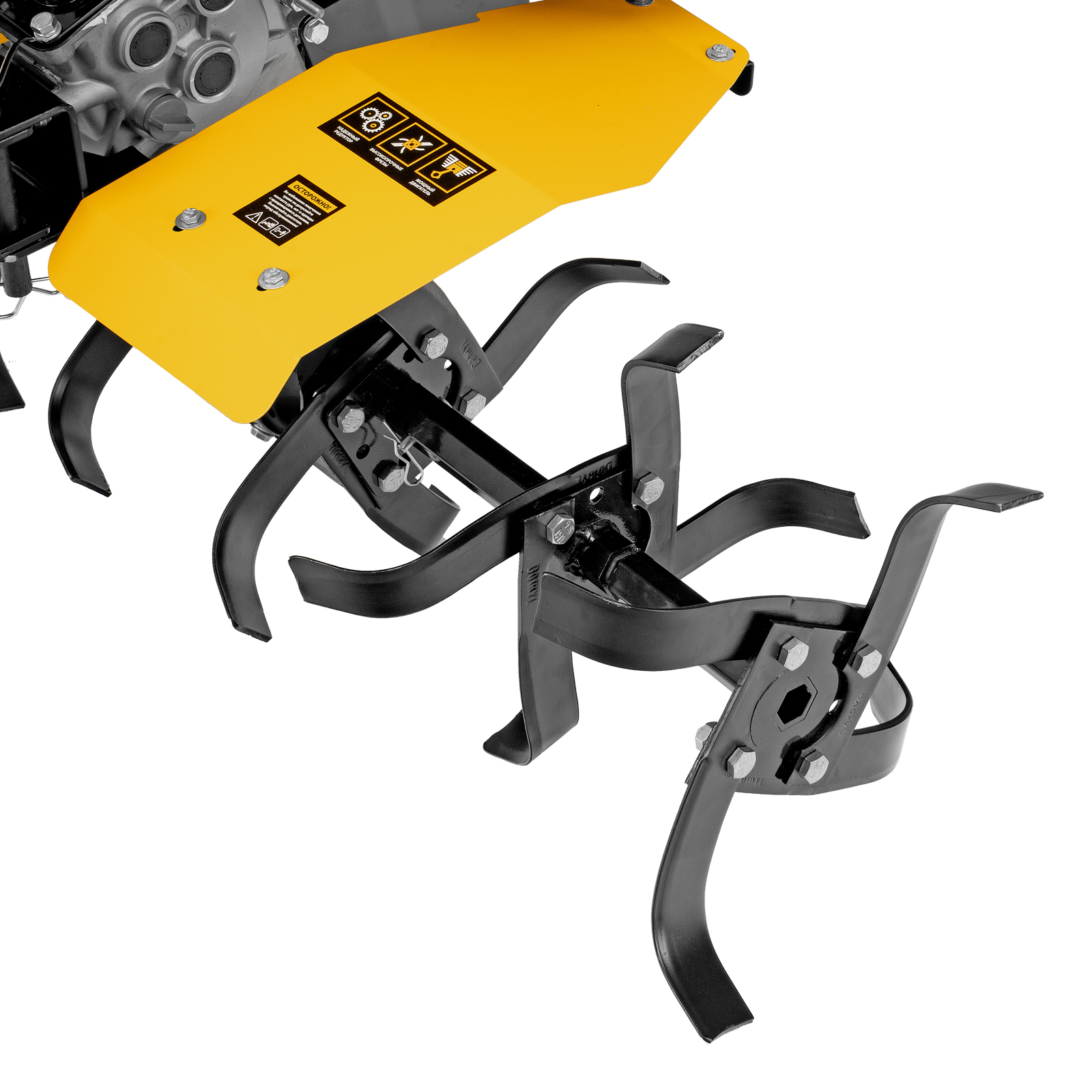 - Настраиваемая глубина вспашки — степень погружения фрез в почву можно задать, отрегулировав сошник по высоте.