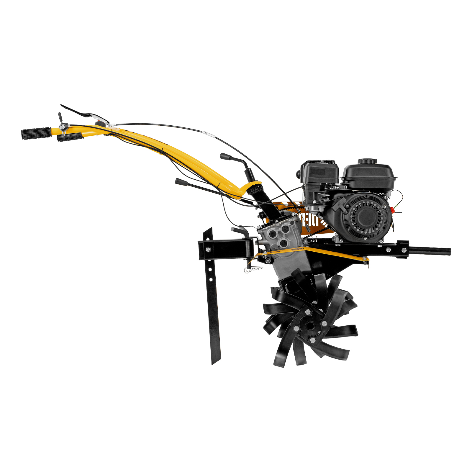 - Удобная работа — основные элементы управления расположены на рукоятках, для включения сцепления и регулировки оборотов двигателя не нужно наклоняться.