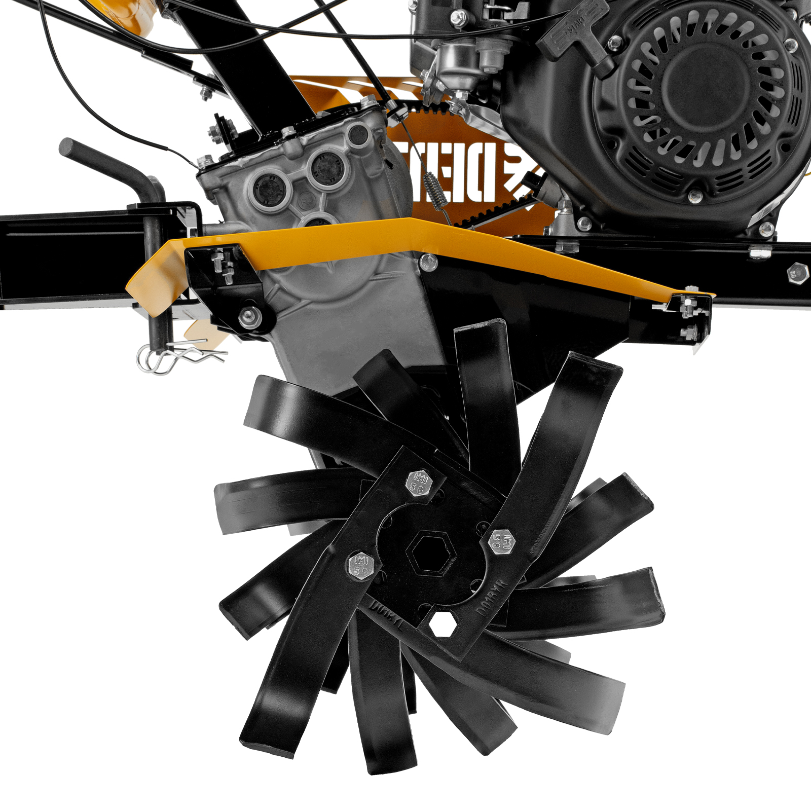 - Эффективная работа — благодаря усиленному шестеренчато-цепному редуктору с алюминиевым корпусом мотоблок успешно справляется даже с плотным, глинистым грунтом.
