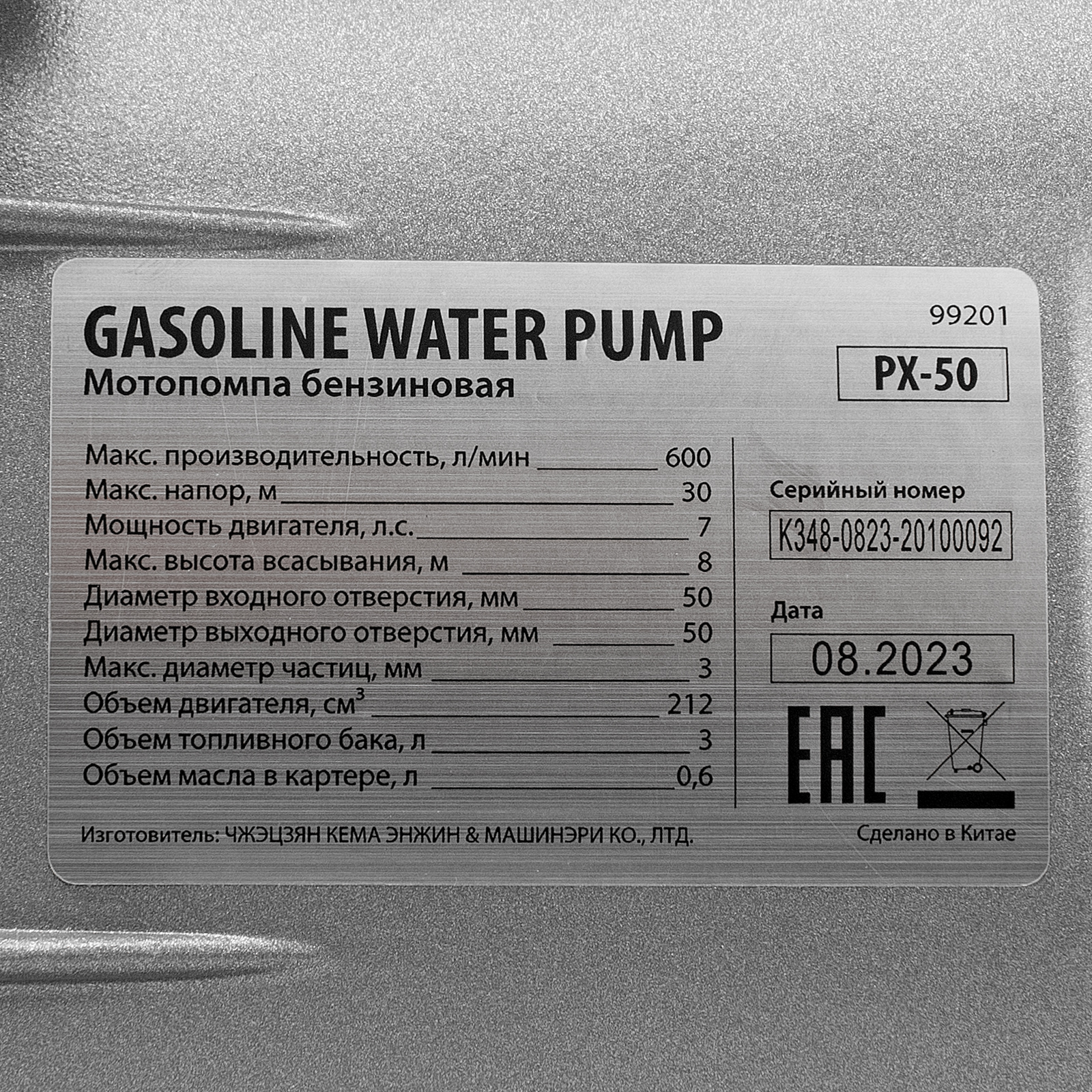 Мотопомпа бензиновая для чистой воды PX-50, 7 л.с, 2", 600 л/мин, глубина 8 м, напор 30 м Denzel в Воронеже