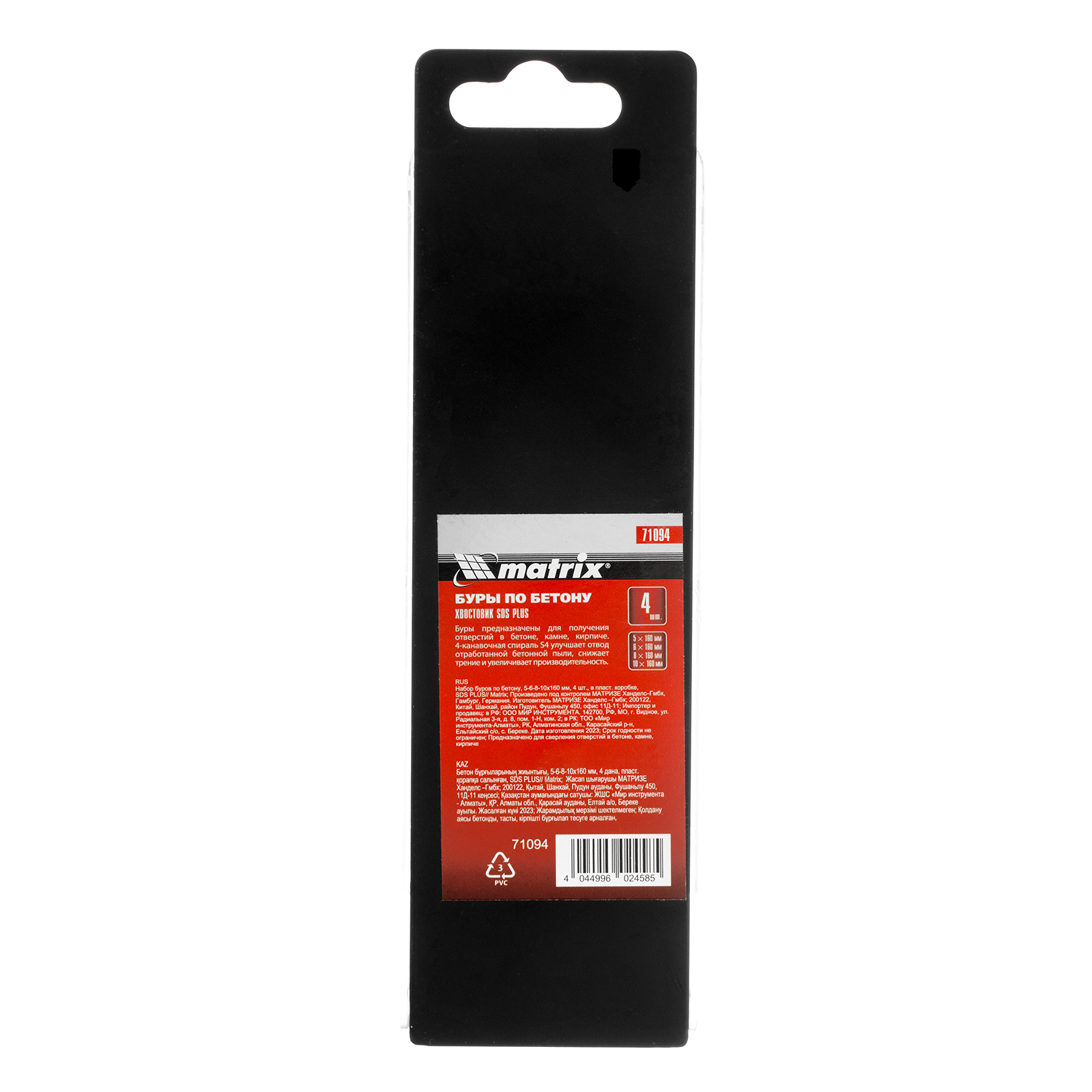 Набор Matrix 71094 состоит из 4 буров по бетону размером 5-6-8-10 х 160 мм, с хвостовиком SDS PLUS, упакованных в пластиковую коробку. Пригодится как начинающим, так и профессиональным мастерам для сверления бетона, кирпича и камня. Применяется при проведении монтажных, демонтажных, ремонтных и строительных работ.