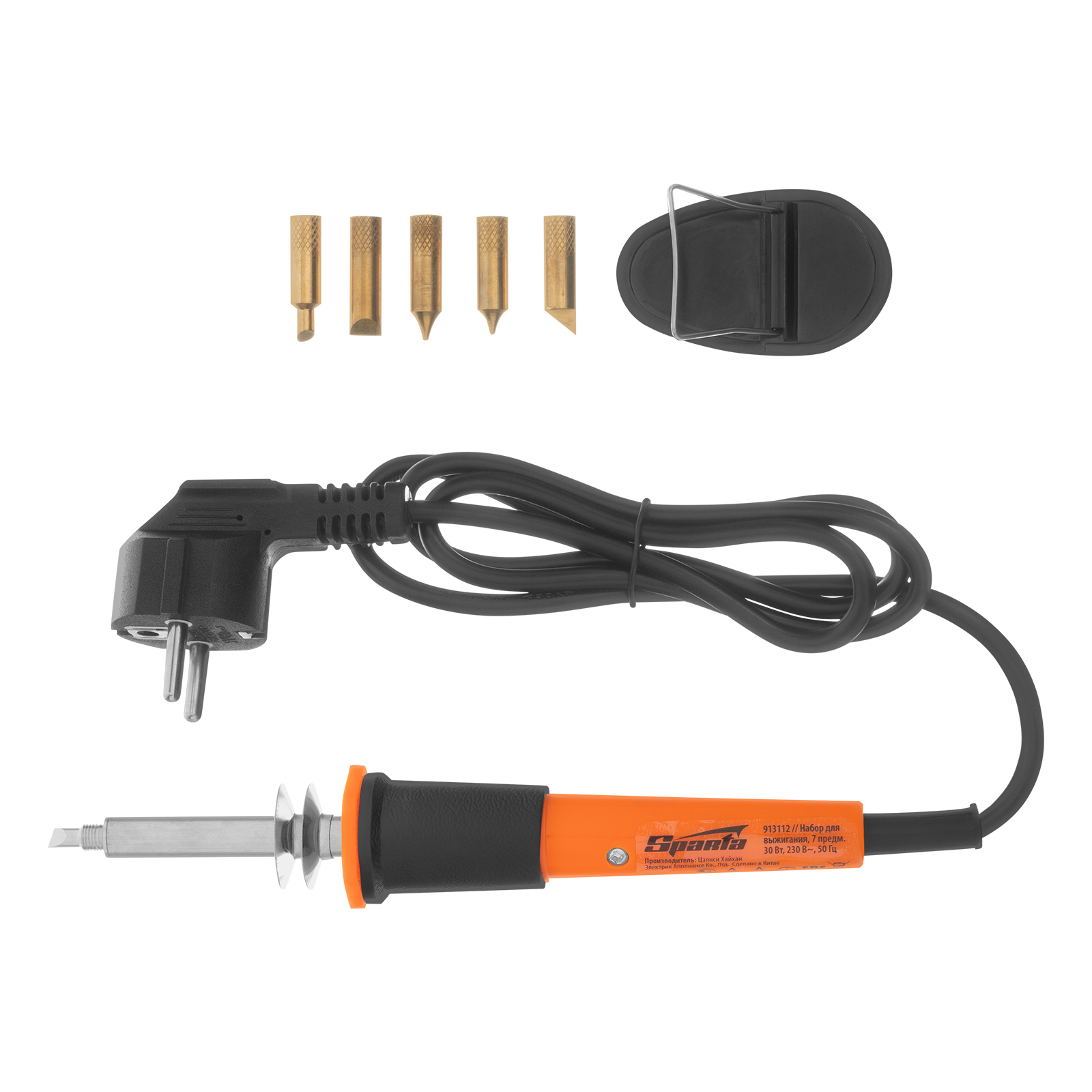 Набор для выжигания, 7 предметов: паяльник 30 Вт, подставка, жала сменные Sparta в Воронеже