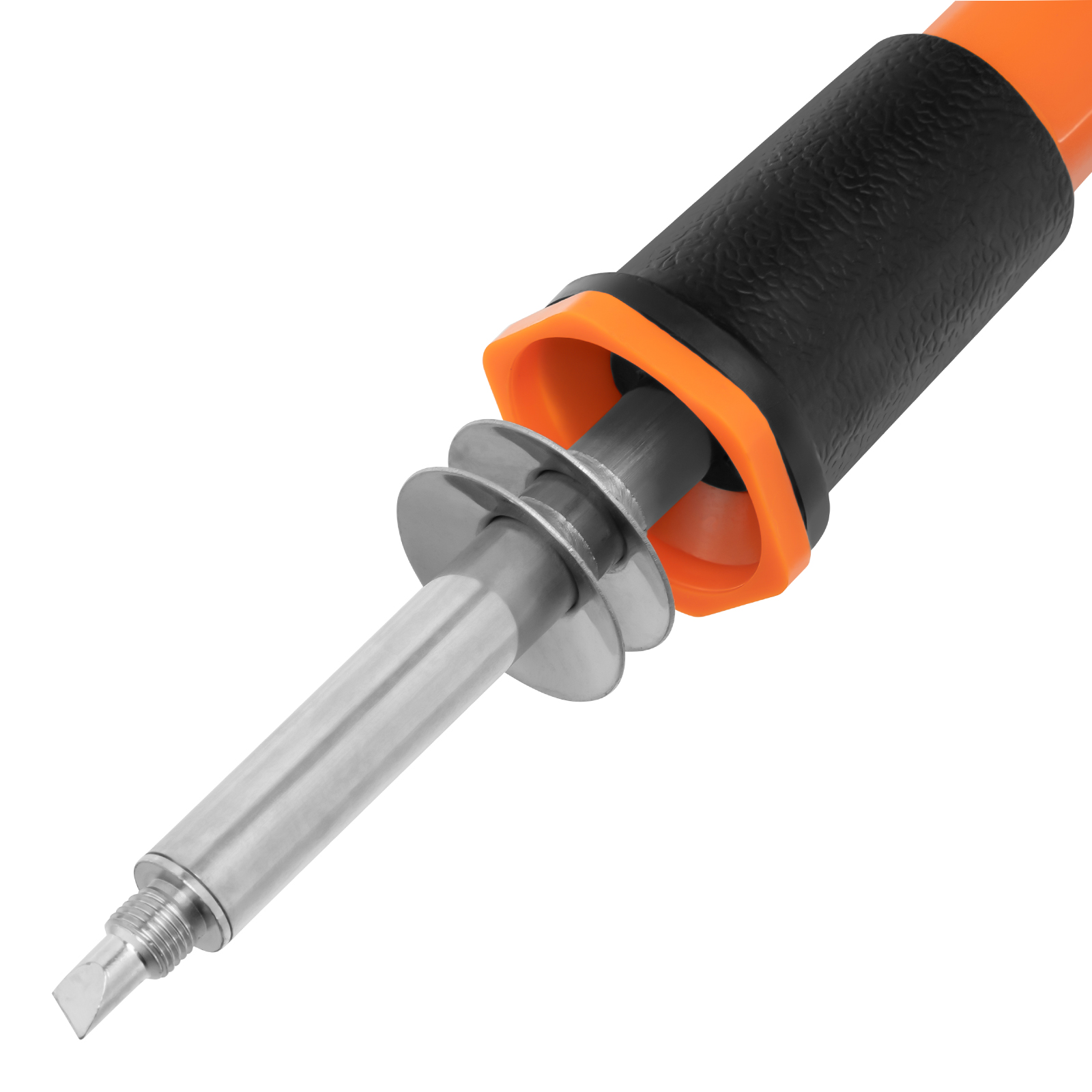 - Комфортная работа — на пластиковой рукоятке паяльника имеется широкое резиновое кольцо, благодаря которому она не нагревается и не выскальзывает из ладони.