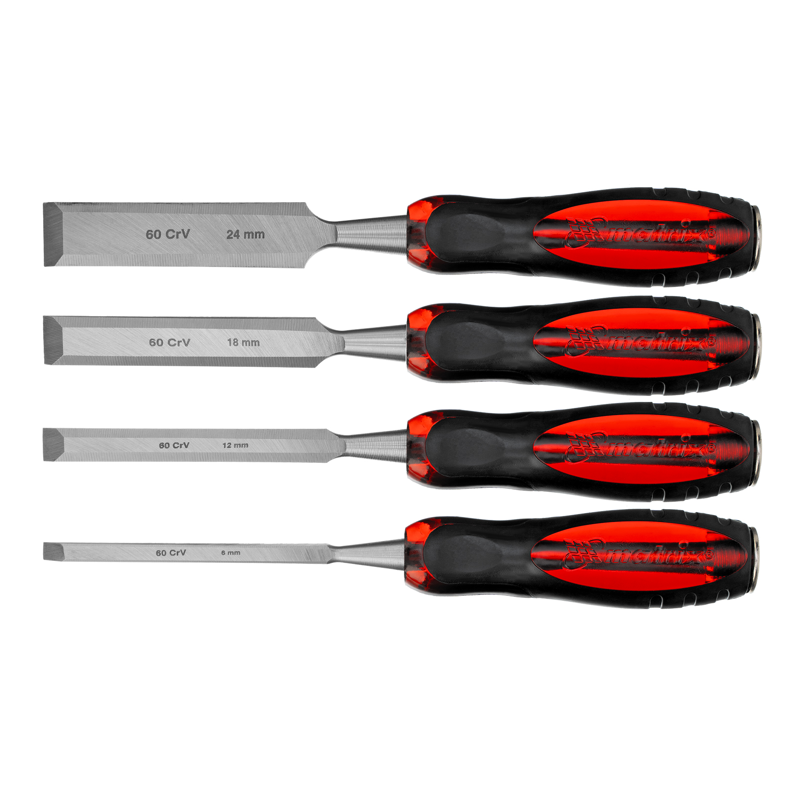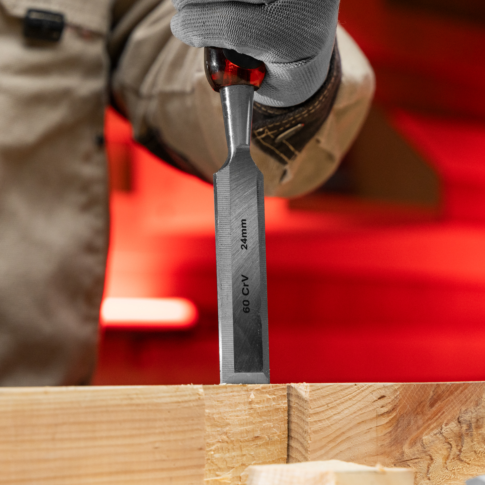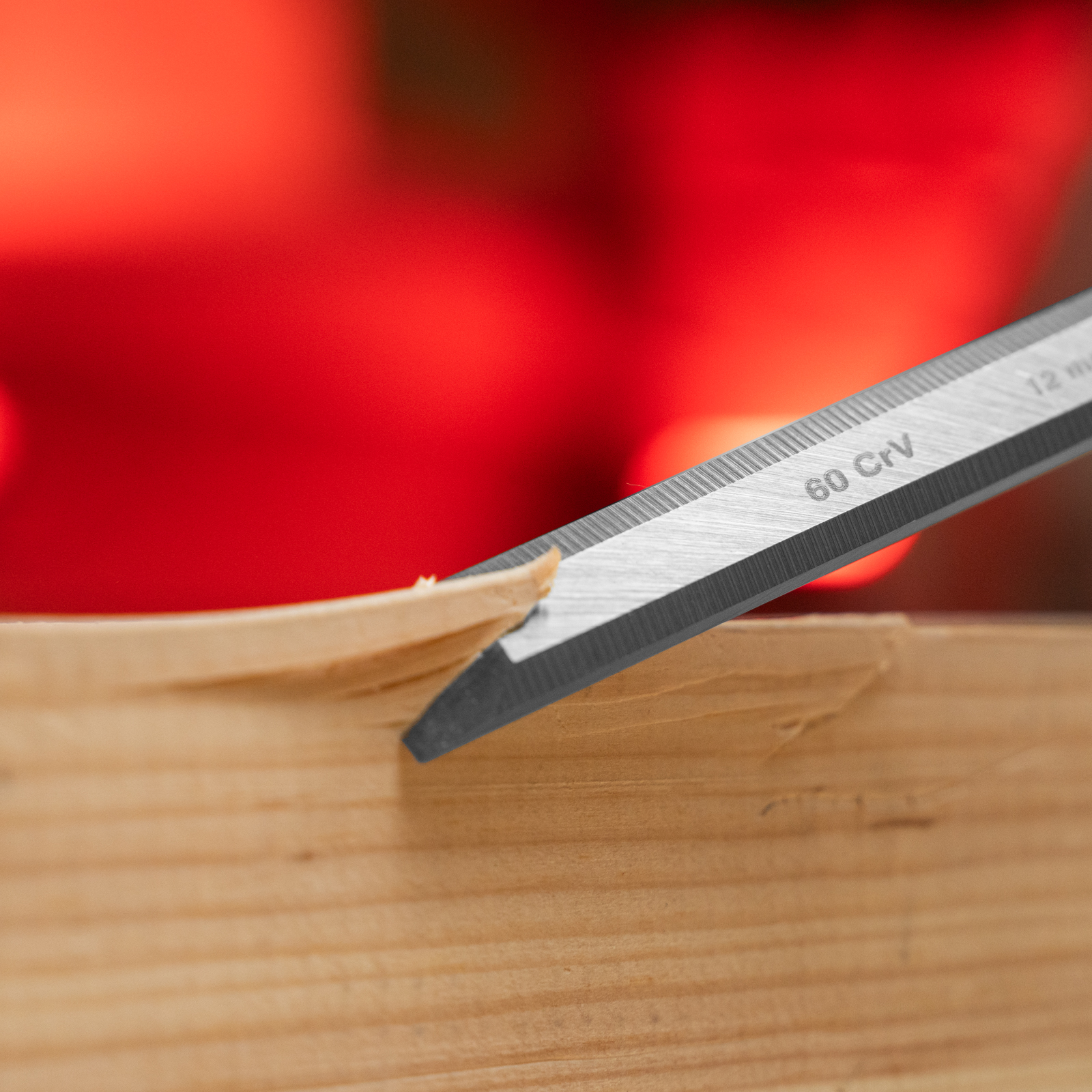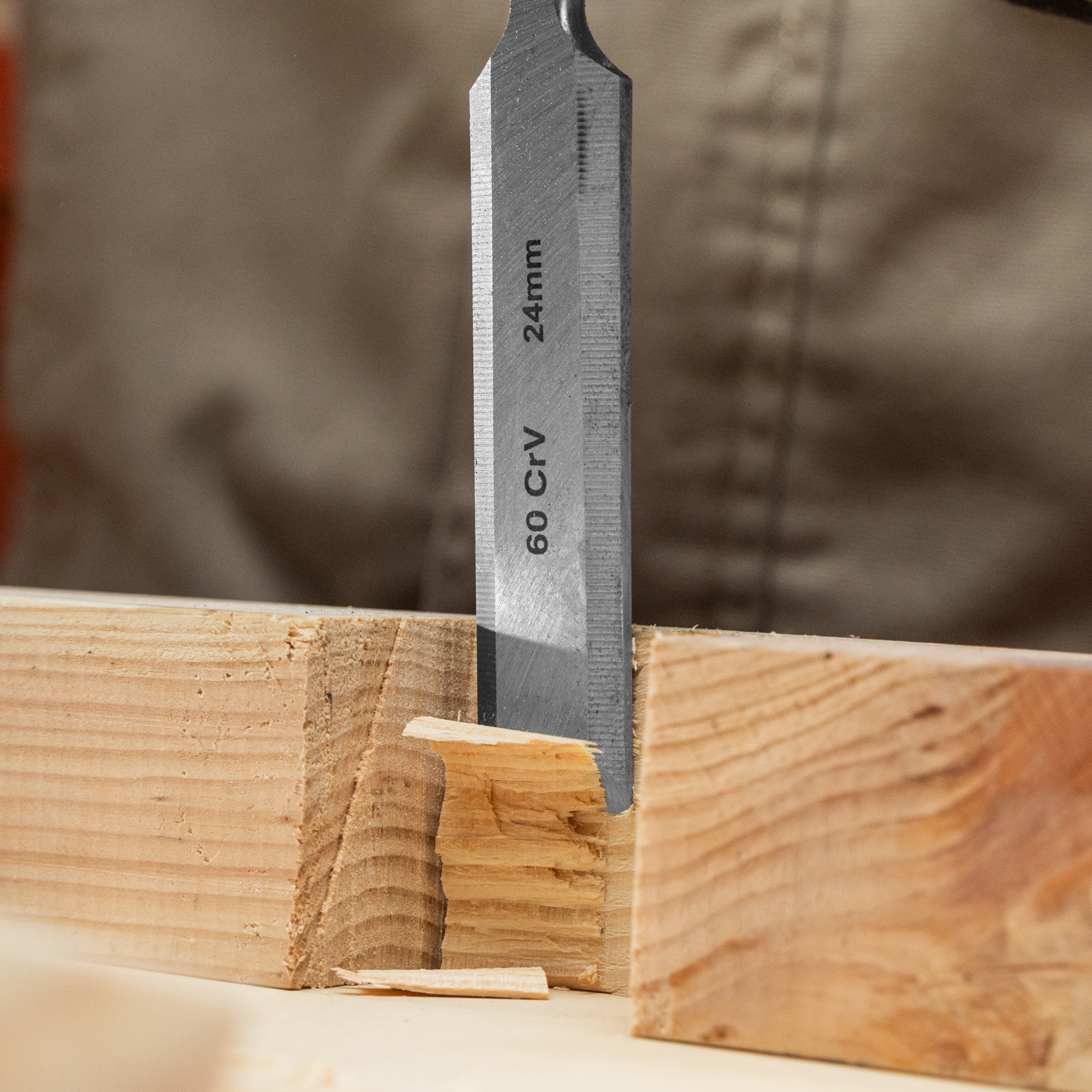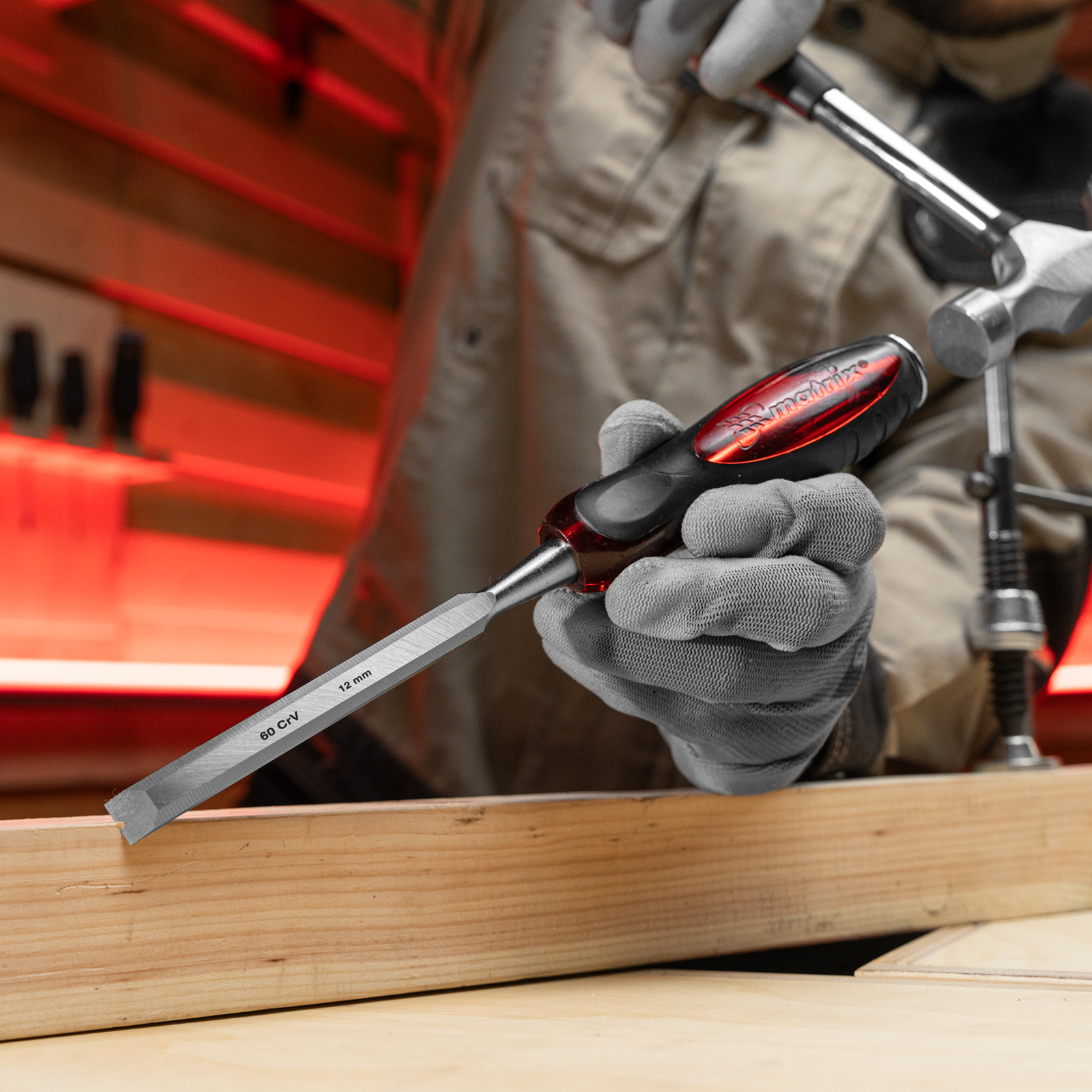 - Повышенная прочность — стамески из инструментальной легированной стали CrV имеют сквозной металлический стержень и легко выдерживают ударные нагрузки.