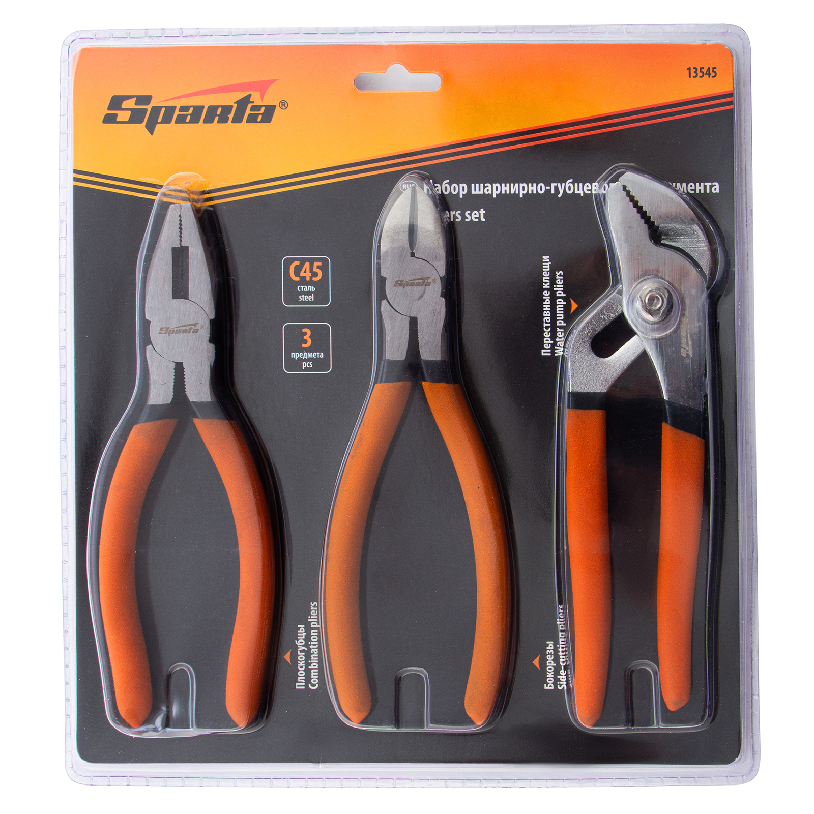 Набор губцевого инструмента №2 Sparta 13545 включает 3 предмета — бокорезы, переставные клещи и плоскогубцы. Их используют для перекусывания проводов и проволоки, а также для зажима и удержания заготовок с целью их соединения или обработки. Переставные клещи позволяют удерживать детали разных форм и размеров, поскольку величина раствора губок у них регулируется. Набор будет полезен для проведения слесарных, монтажных, сантехнических работ, а также пригодится во время ремонта электроники или бытовой техники.
