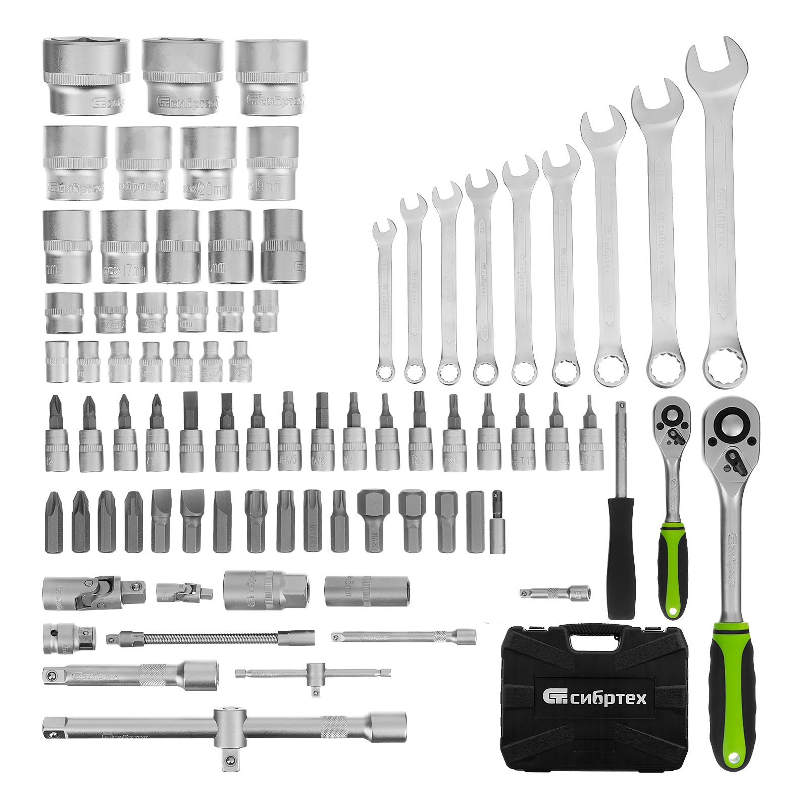 Набор инструмента, 1/2", 1/4", пластиковый кейс, 83 предмета Сибртех в Воронеже