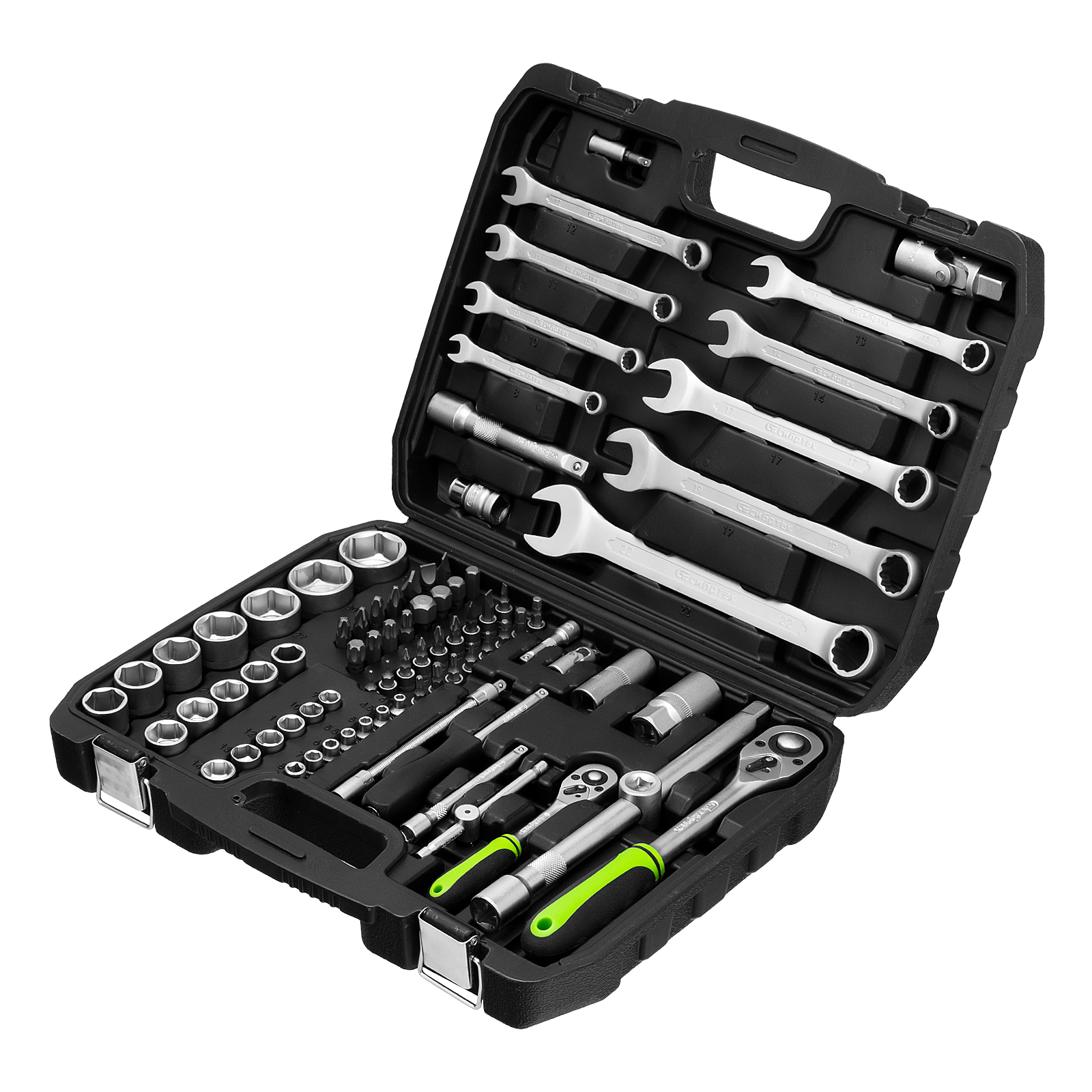 - Удобное хранение и транспортировка — набор упакован в кейс из ударопрочного пластика, закрывающийся на металлические замки.