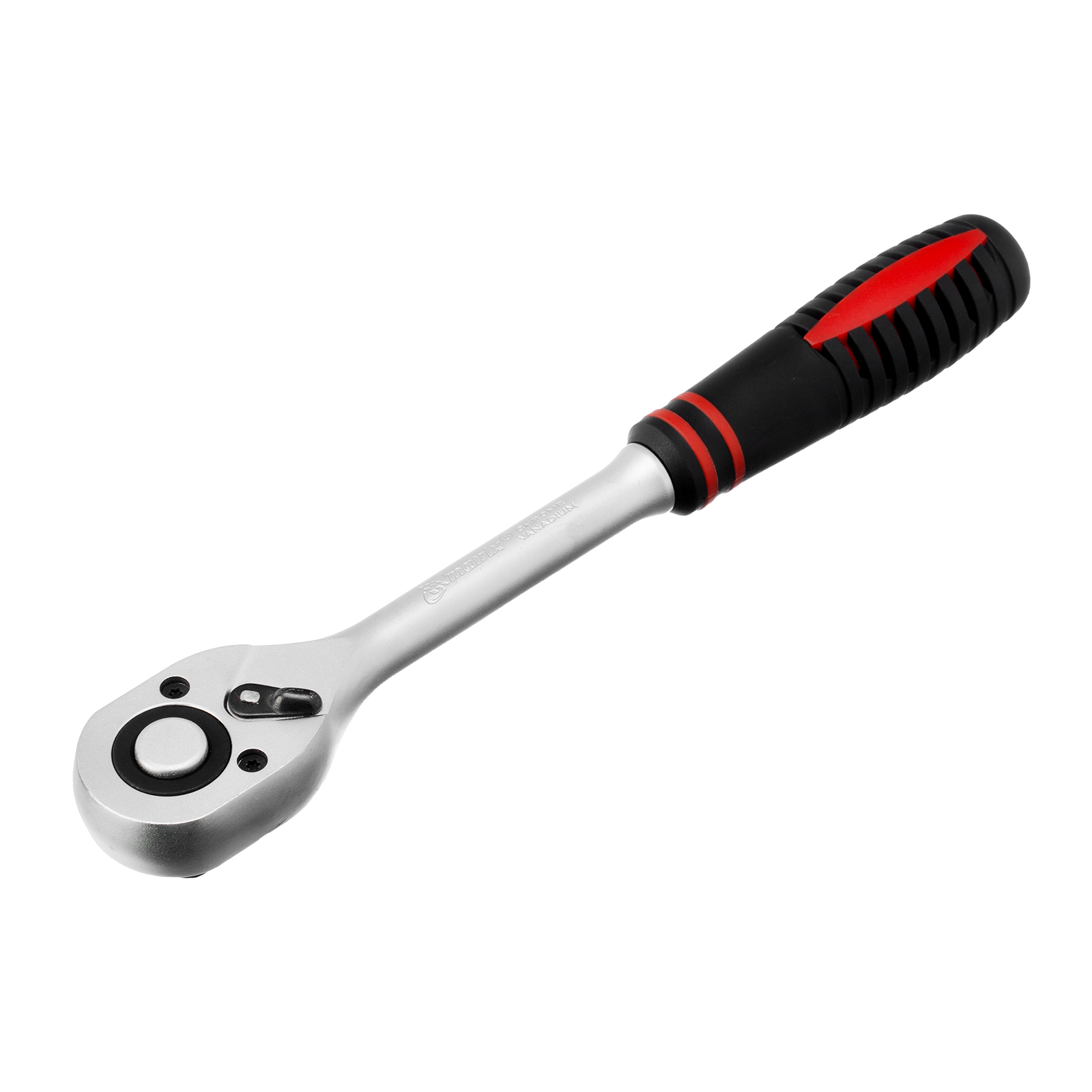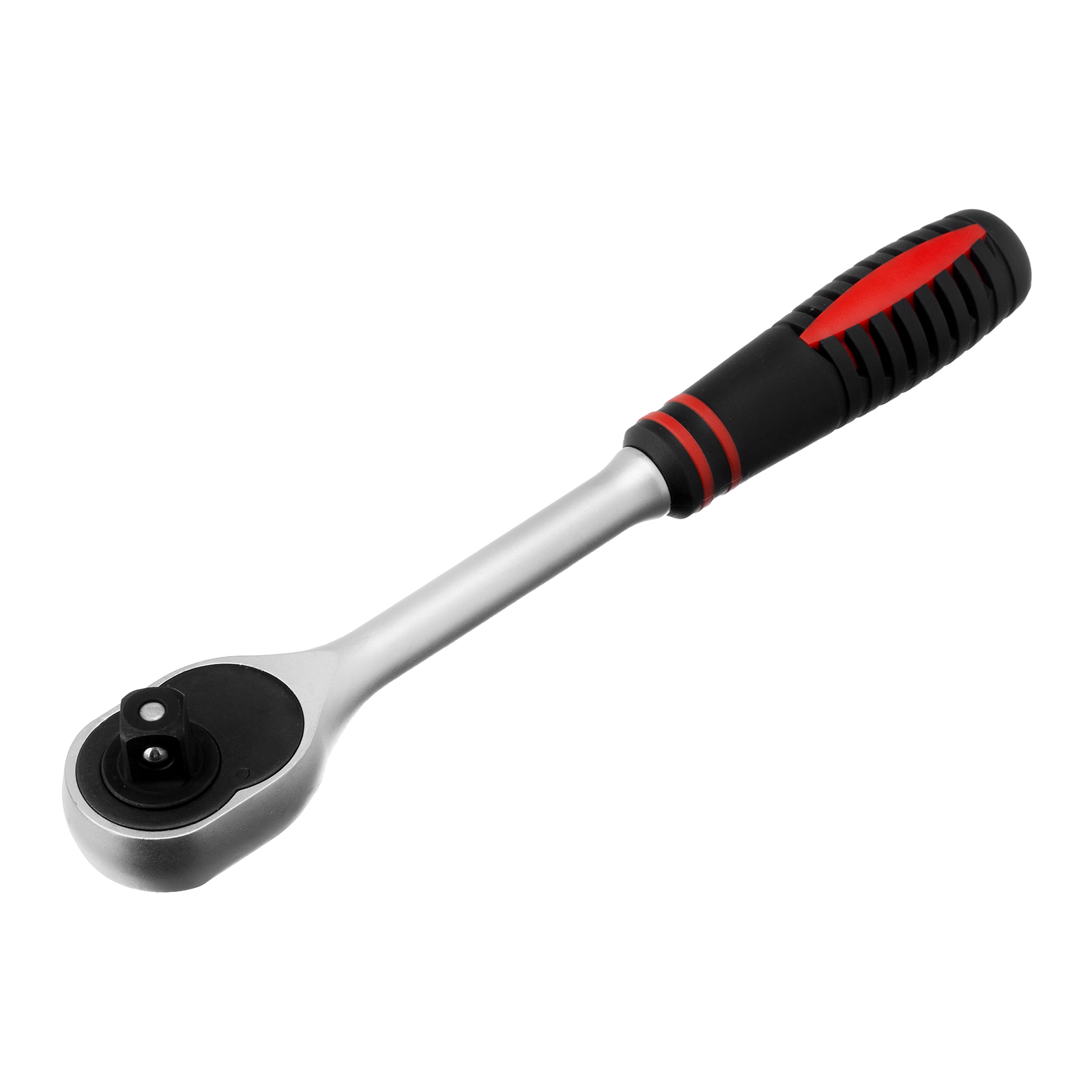 - Быстрая замена головок — кнопка сброса на трещотке позволяет мгновенно снять насадку.