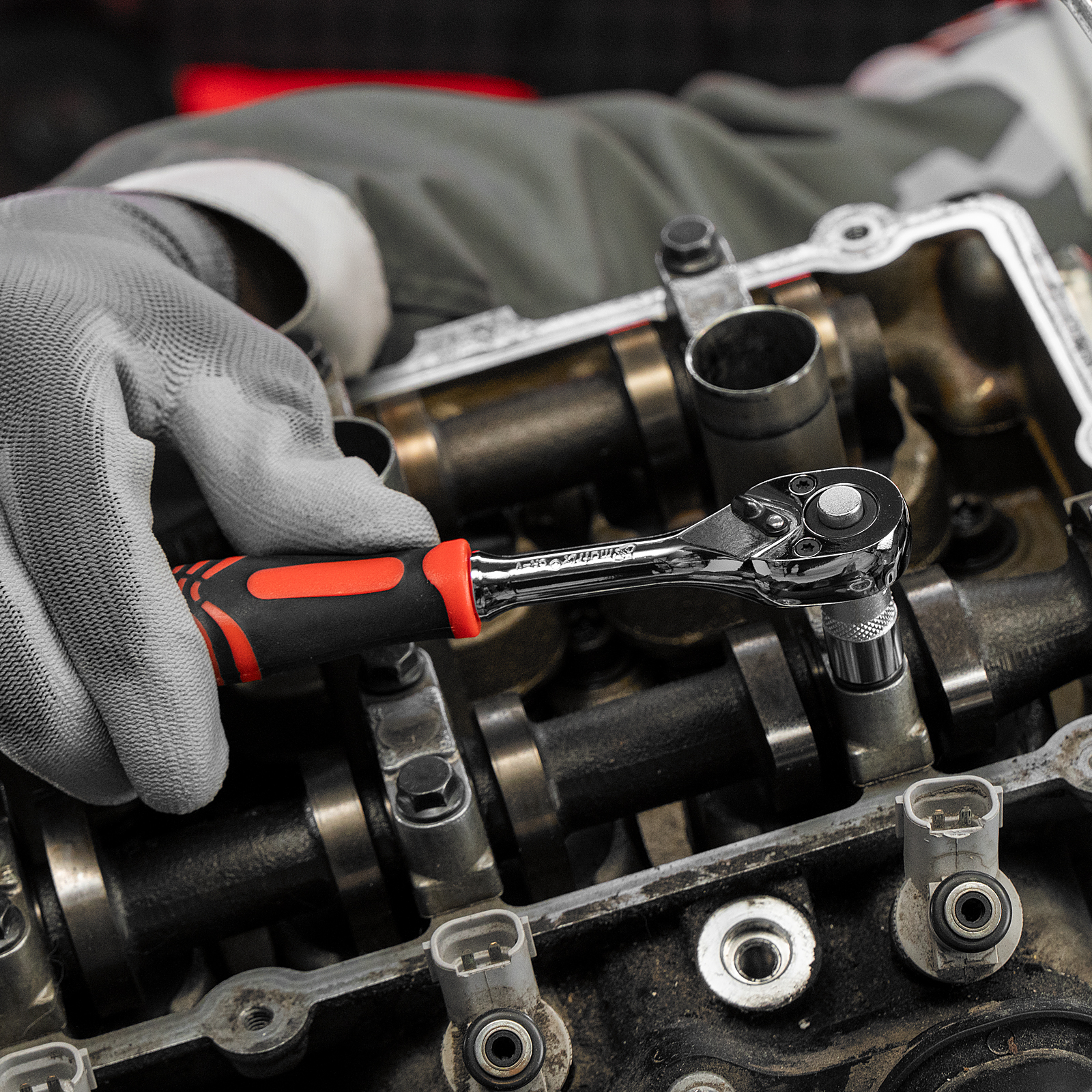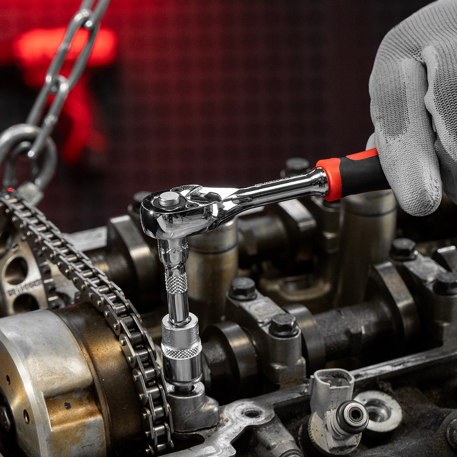 - Быстрая замена головок — кнопка сброса на трещотке позволяет мгновенно снять насадку.