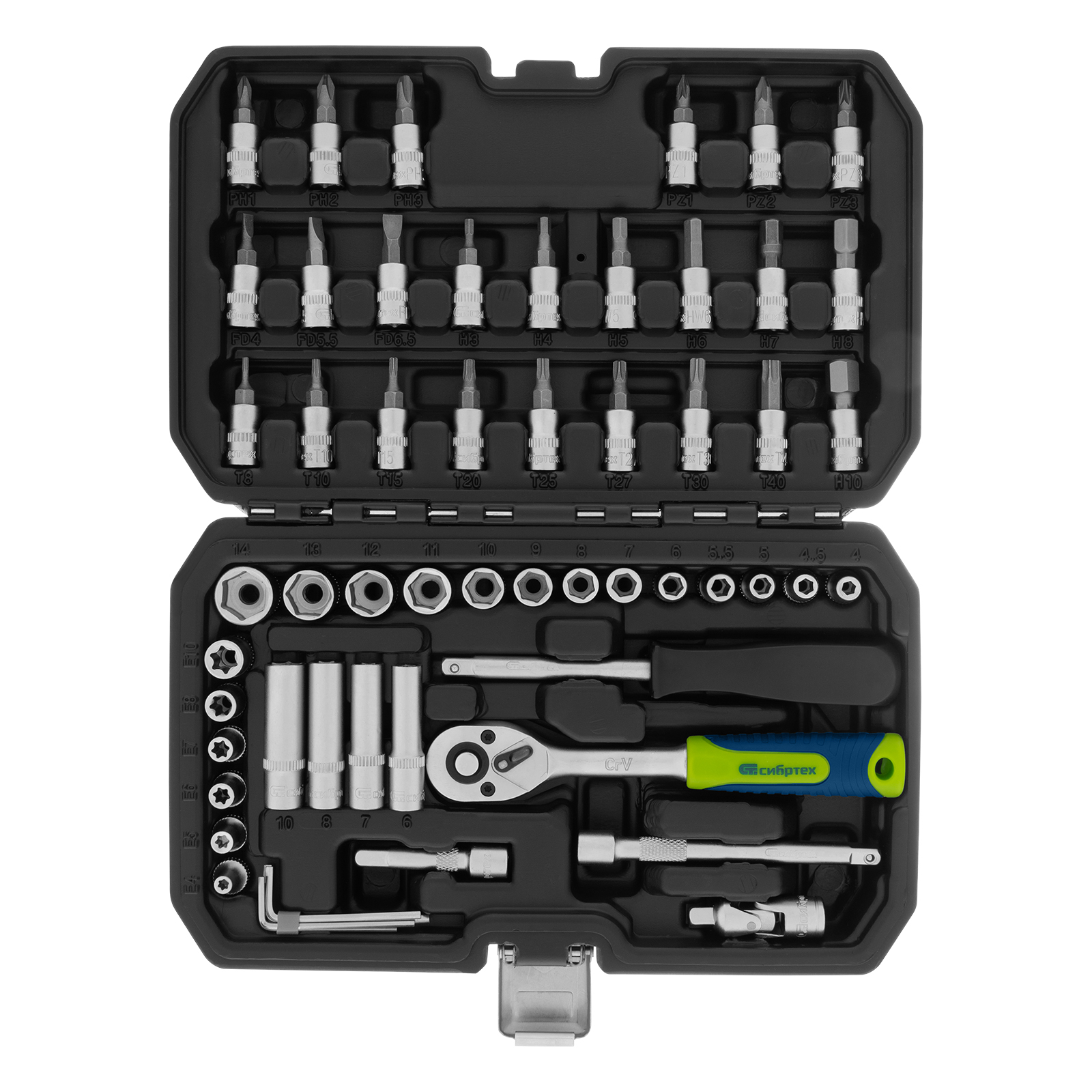 Набор инструментов, 1/4", пластиковый кейс 56 предметов Сибртех в Воронеже
