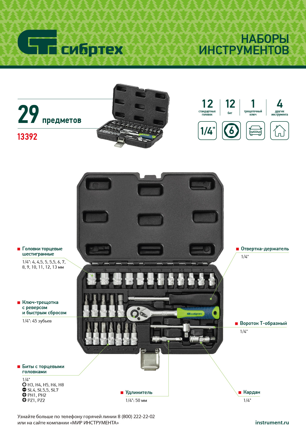 Набор инструментов, 1/4", пластиковый кейс, 29 предметов Сибртех в Воронеже