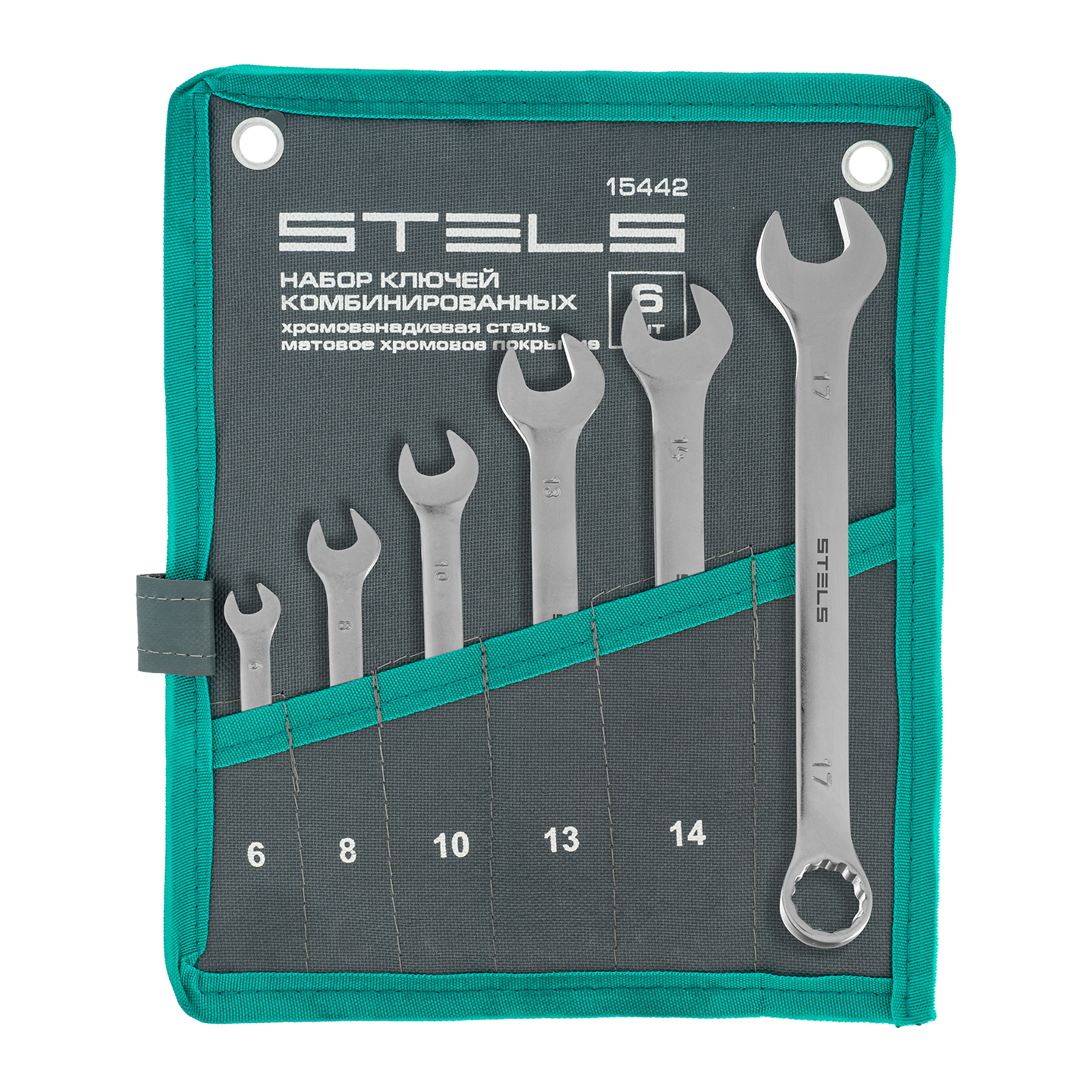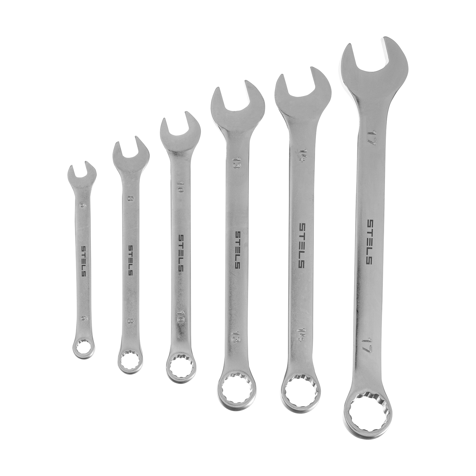 Набор ключей комбинированных 6-17 мм, 6 шт., CrV, матовый хром Stels в Воронеже