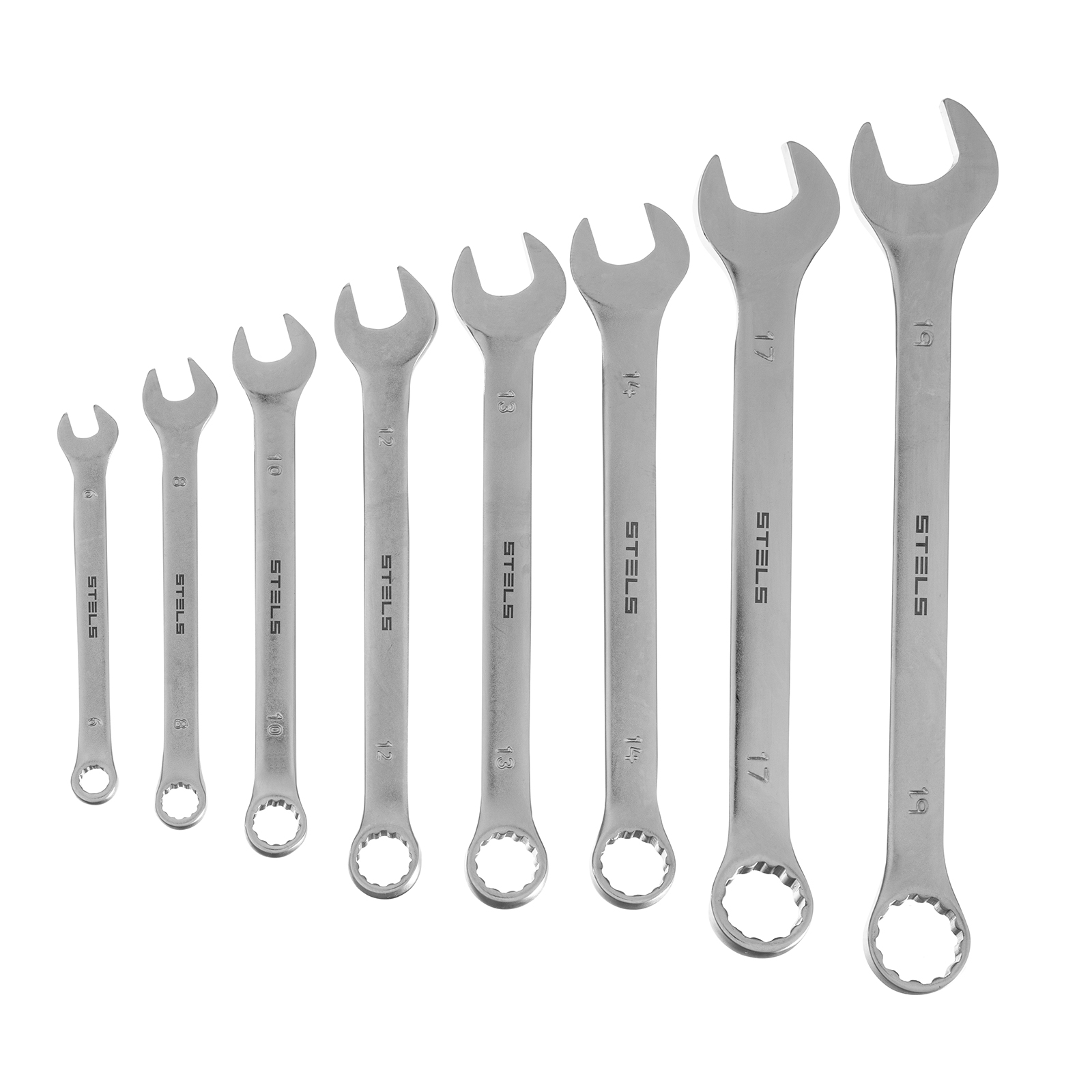 Набор ключей комбинированных 6-19 мм, 8 шт., CrV, матовый хром Stels в Воронеже
