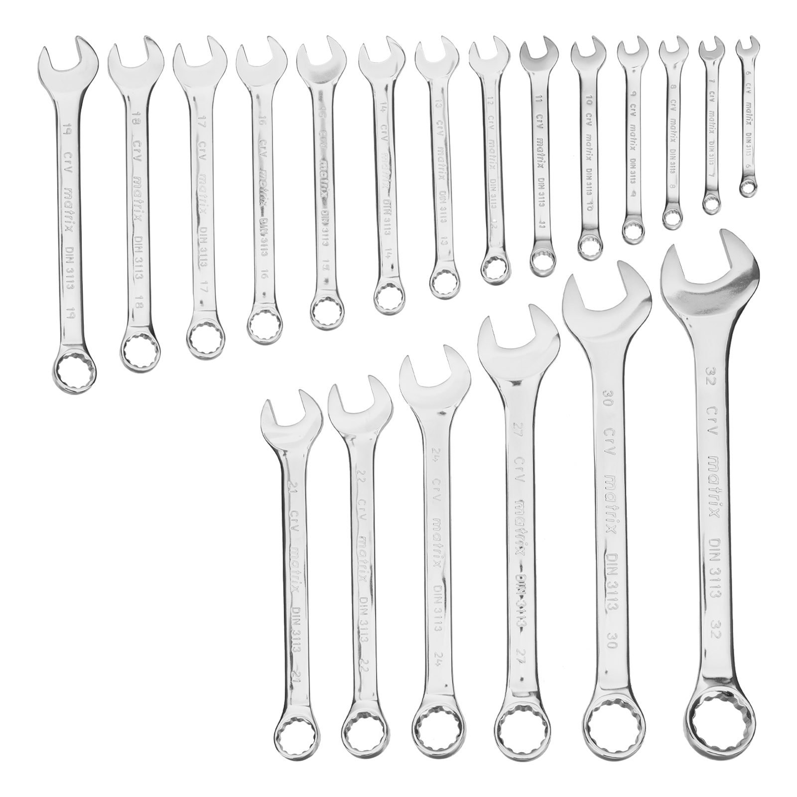 Набор ключей комбинированных 6-32 мм, 20 шт, CrV, полированный хром Matrix в Воронеже